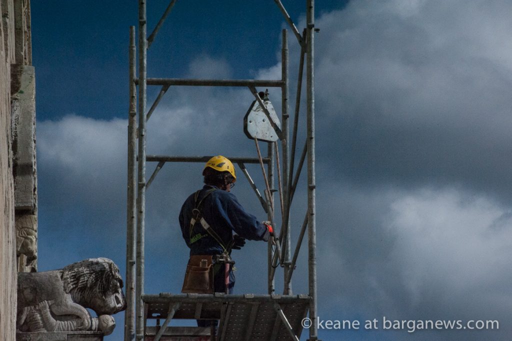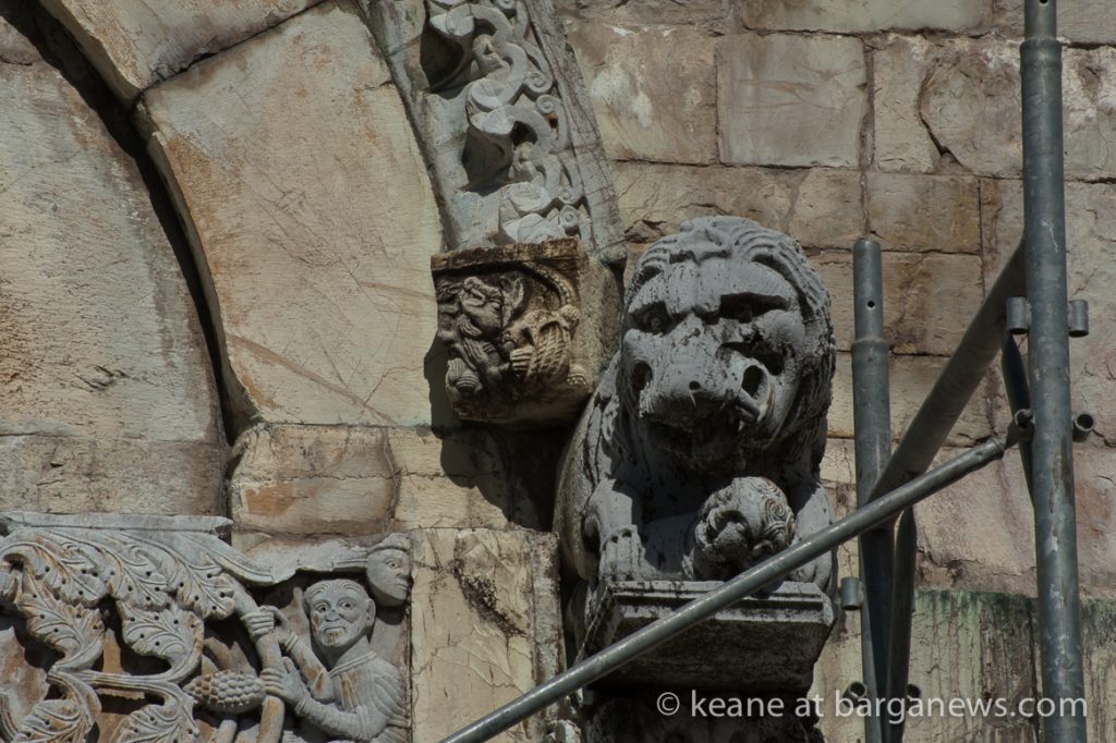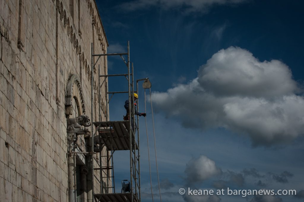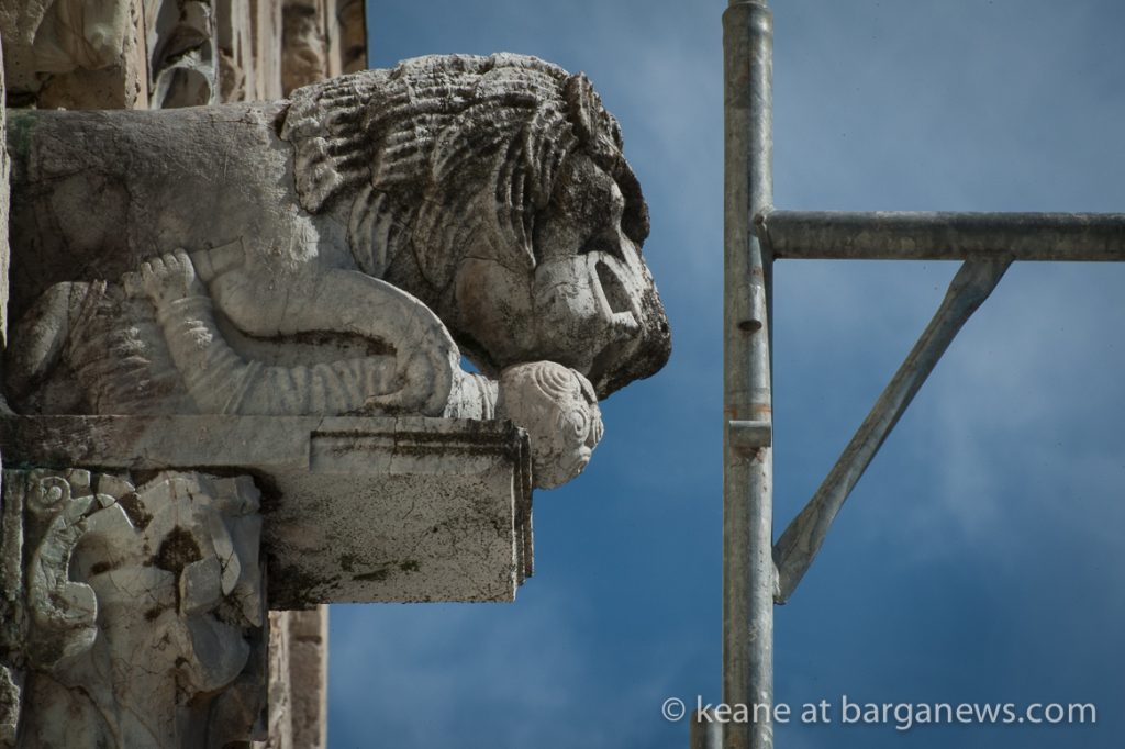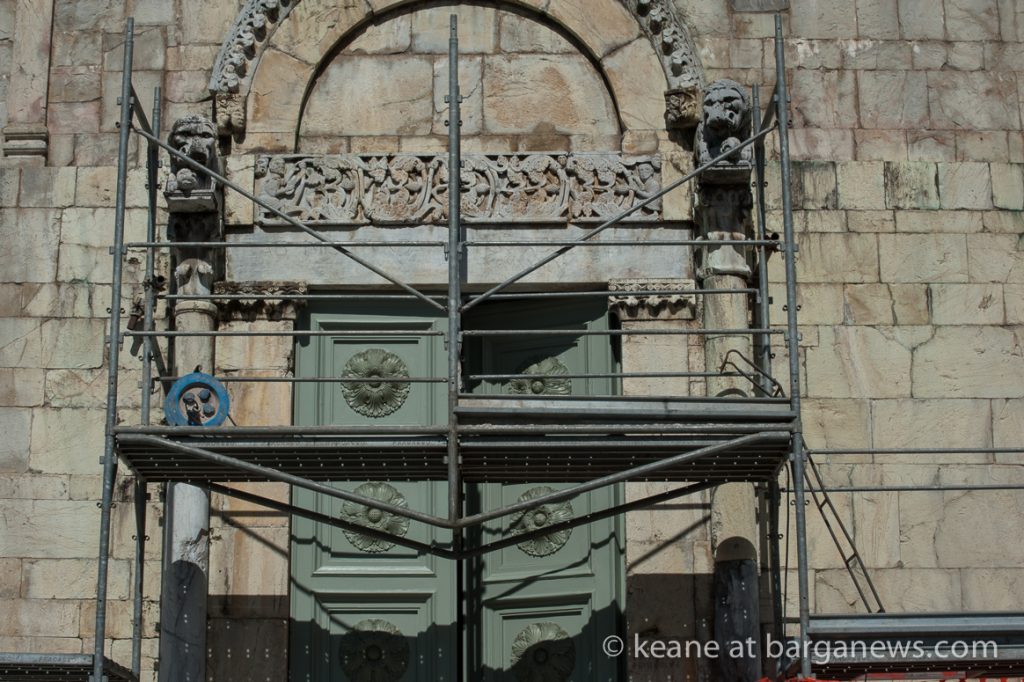 This afternoon scaffolding was erected outside and above the main doorway into the Duomo and finally work has started to resolve the problem.