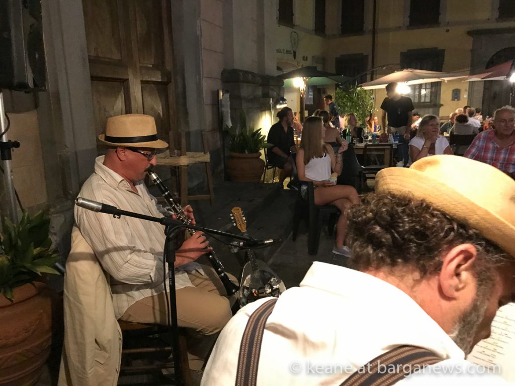 Full house last night in the piazza Annunziata in Barga Vecchia as patrons of La Locanda and the Gelateria and many other guest lining the piazza joined in with a celebration of Italian music with a swing as the Aristodemo’s were playing to a home crowd.