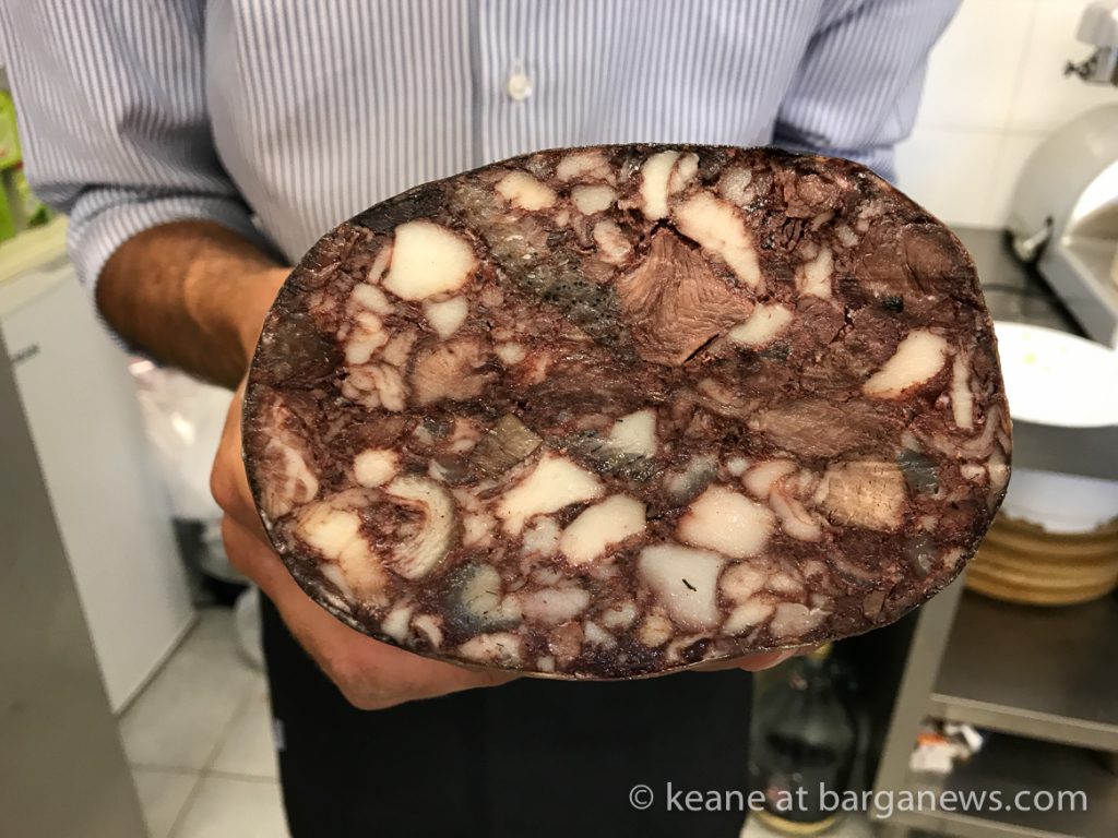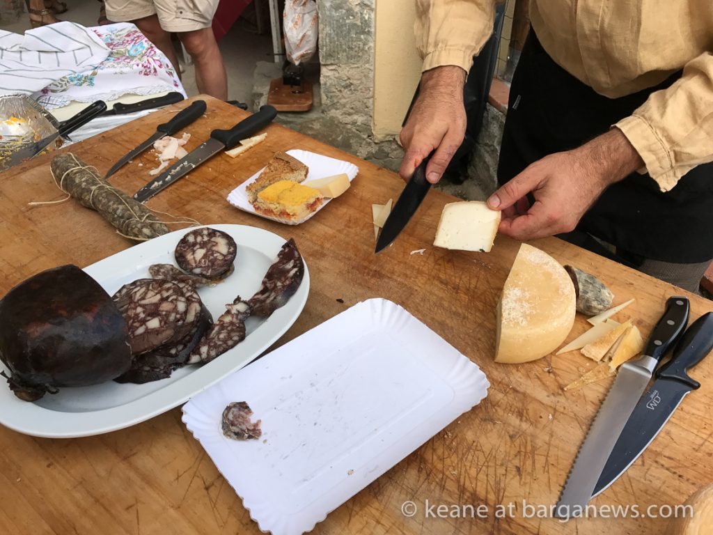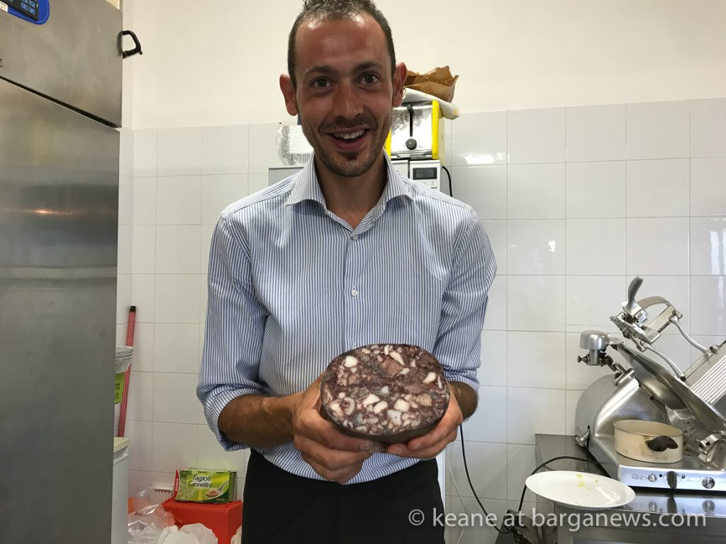 He has fenced off large areas of the forest surrounding the village and is breeding Cinta Senese pigs for locally prepared salami, fresh sausages, prosciutto and lardo.