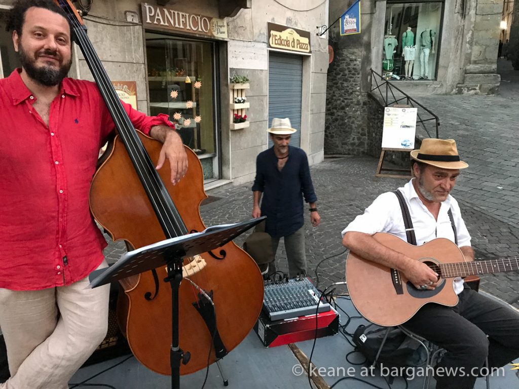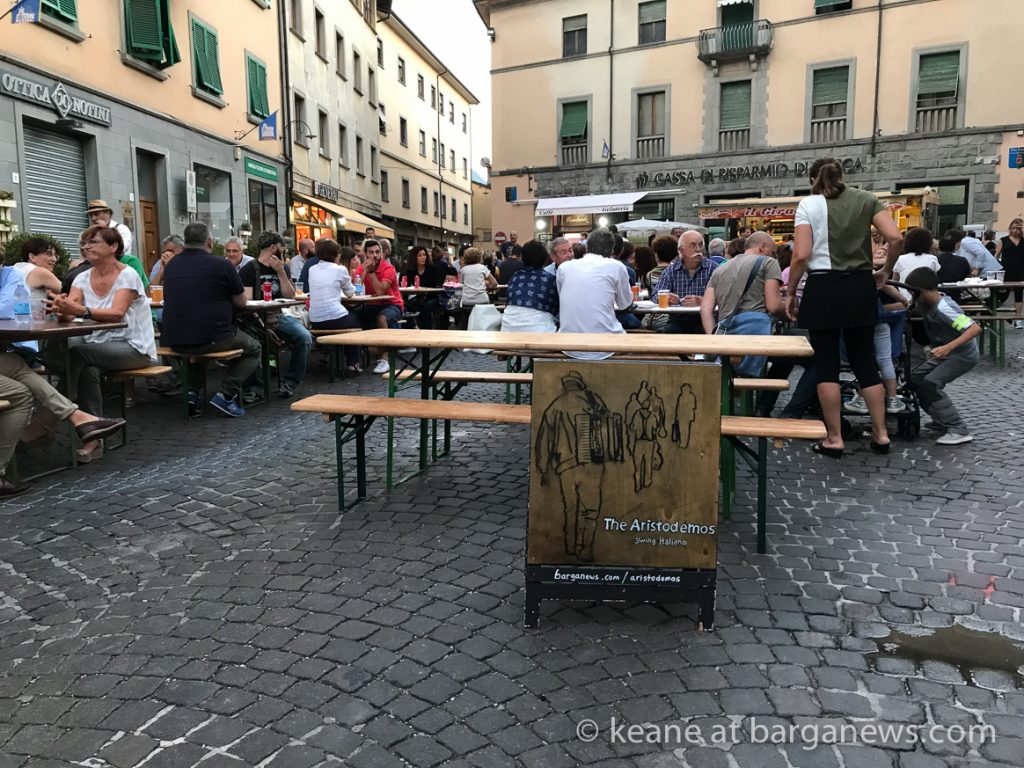 More than 100 people sat down in the main piazza in Castelnouvo last night (which had been closed to traffic for the occasion) and enjoyed freshly roasted chicken and some swing music from the Barga band, The Aristodemo’s.