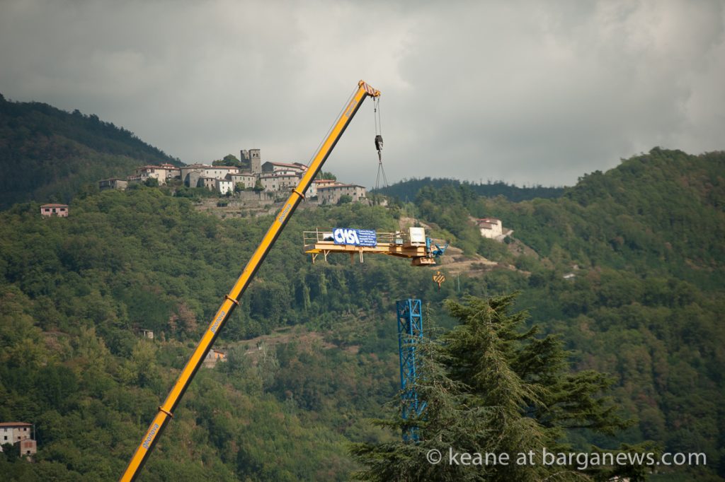 It seems like the building work has been going on forever but this morning a dramatic change has taken place as the large crane which has been blocking the view up from Barga Vecchia towards Sommacolonia was finally dismantled.