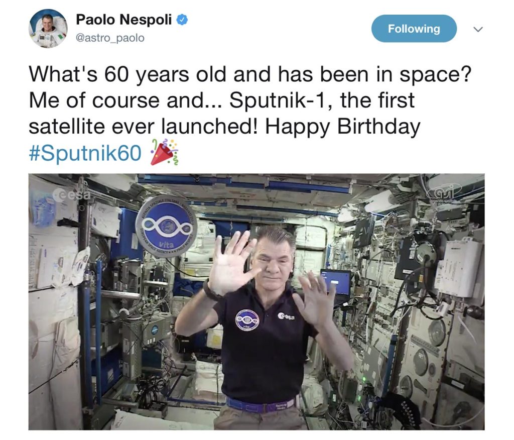 That message came from the International Space Station high above the globe and was written by the Italian astronaut, Paolo Nespoli.
