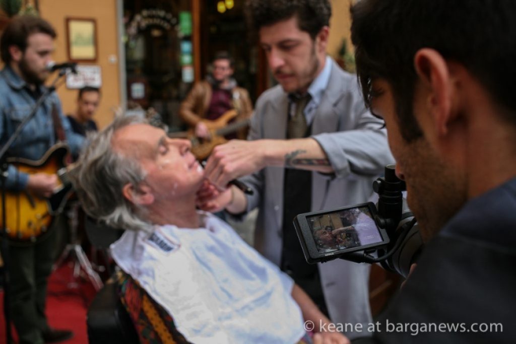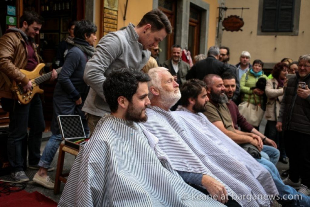 Professional barbers – Andrea Cottone from the Barberi BisB in Lucca, Simone Tamagnini from I Fabbrici at Ghivizzano and Gabrio Tognarelli from the Diego Hair studio at Castelnuovo were invited to Piazza Salvo Salvi in Barga Vecchia….. PLUS ….. a figure running under the name of “The Barber of Saville” , who turned out to be the musician Andrea Guzzoletti armed with an electric shaver.