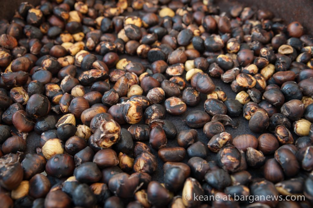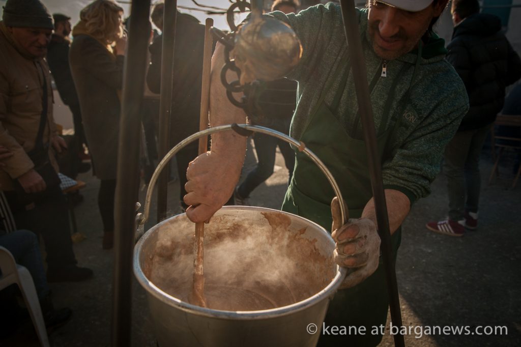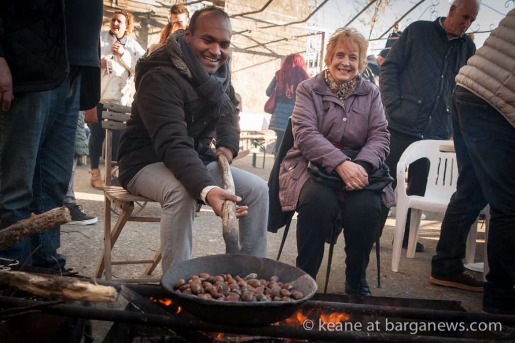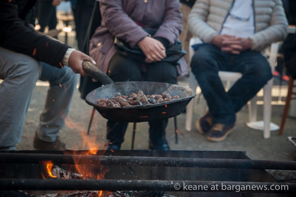 The men from Sommocolonia were roasting the chestnuts using the old traditional method and showing off their prowess by seeing who could launch the chestnuts the highest in the air before they fall back once again into the pan.