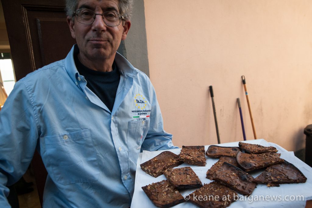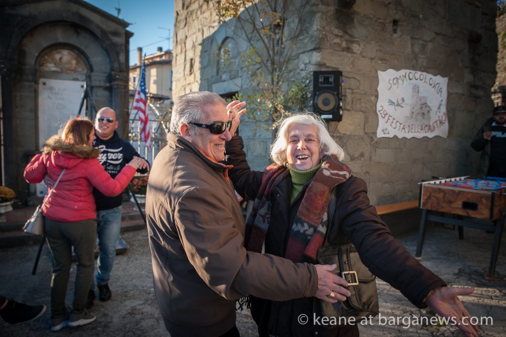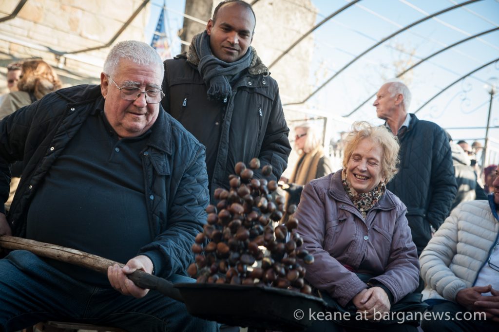 Roast chestnuts – castagne and castagnacci, necci con ricotta and vin brulé were all on offer this afternoon outside the church for those who made it up the hill.