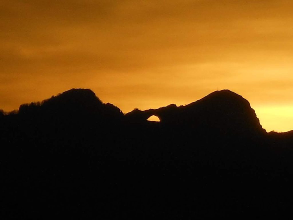 The double sunset from outside the Duomo in Barga Vecchia.This is when the sun drops down behind the mountains and then shines through the natural arch of the Monte Forato.