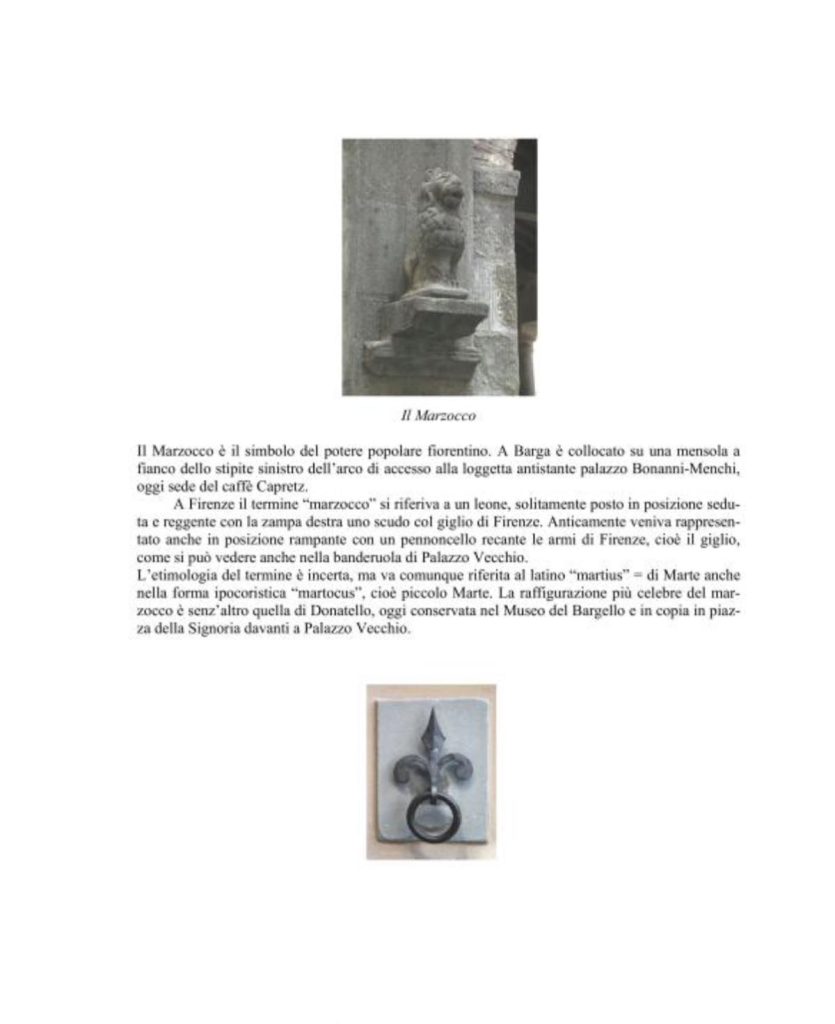The city of Barga and its territory, are rich places of heraldic testimonies, due not only to its relationship with Florence for several centuries but also for the attitude, diffused a little everywhere in the Serchio Valley, to mark his surname, his own family, with an ideographic symbol, mostly realised according to the precise heraldic canons.