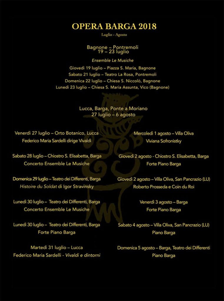 52° Festival Operabarga 2018 – 19 luglio – 5 agosto 2018 – Bagnone e Pontremoli – 19 – 23 luglio – Barga – Lucca – 27 luglio – 5 agosto