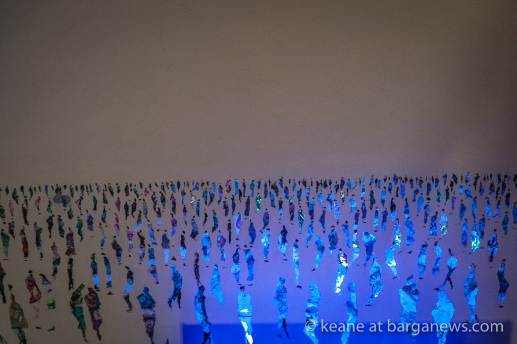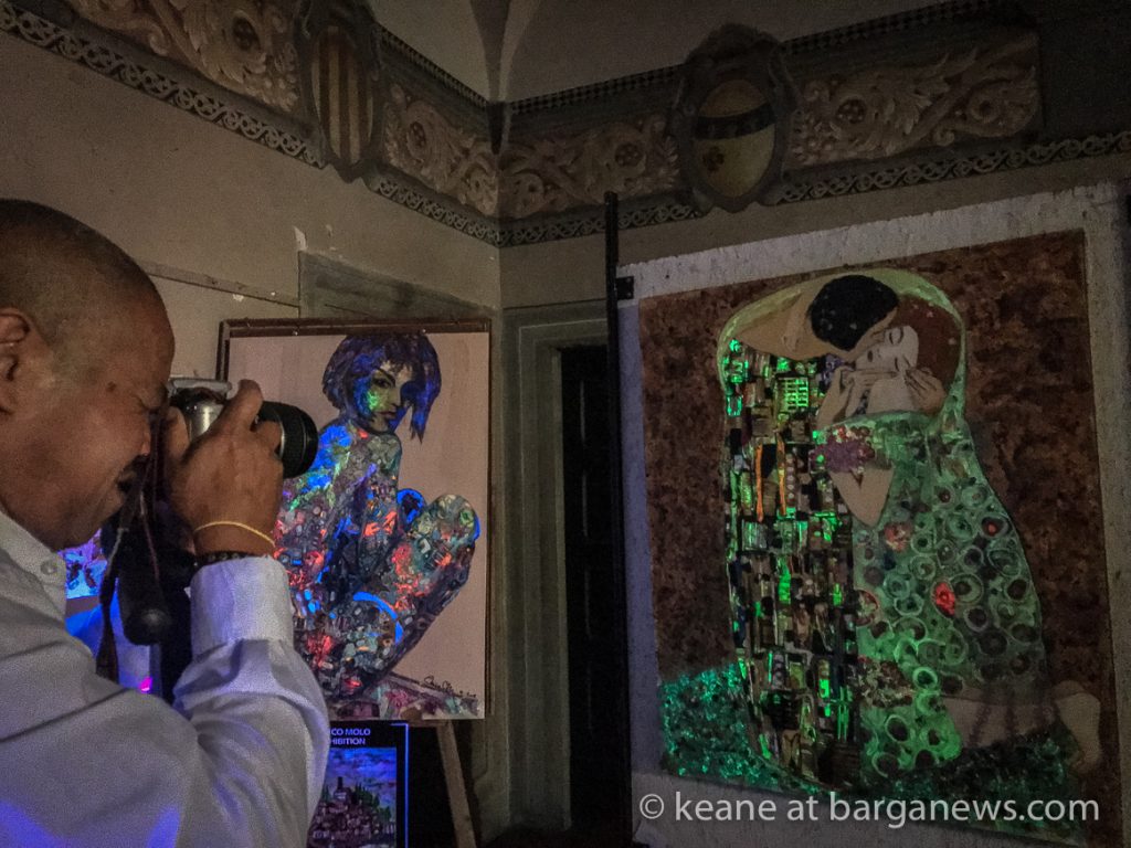 The idea dictates the techniques, the processes and medium used to express meaning were materials found mainly in the streets. Recycling is used to create 85% of the works.