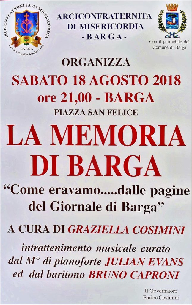 Appuntamento in Piazza San Felice o Verzani a Barga, sopra Porta Macchiaia, presso la chiesa di San Felice della Misericordia, per rivivere un tempo passato nel pensiero della Barga che potrà ancora essere.