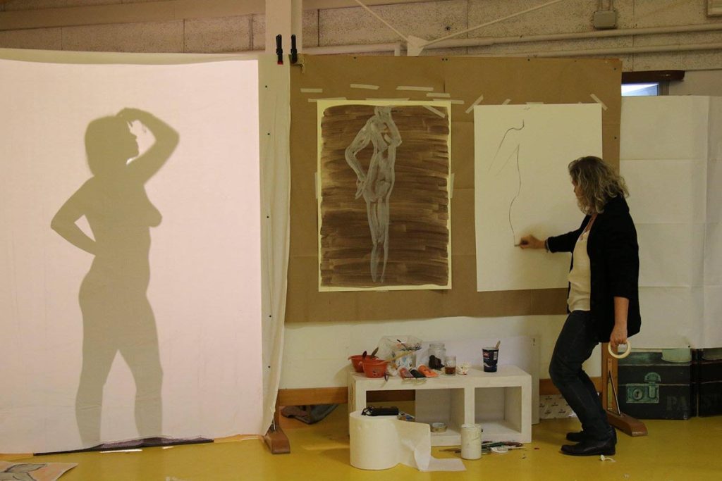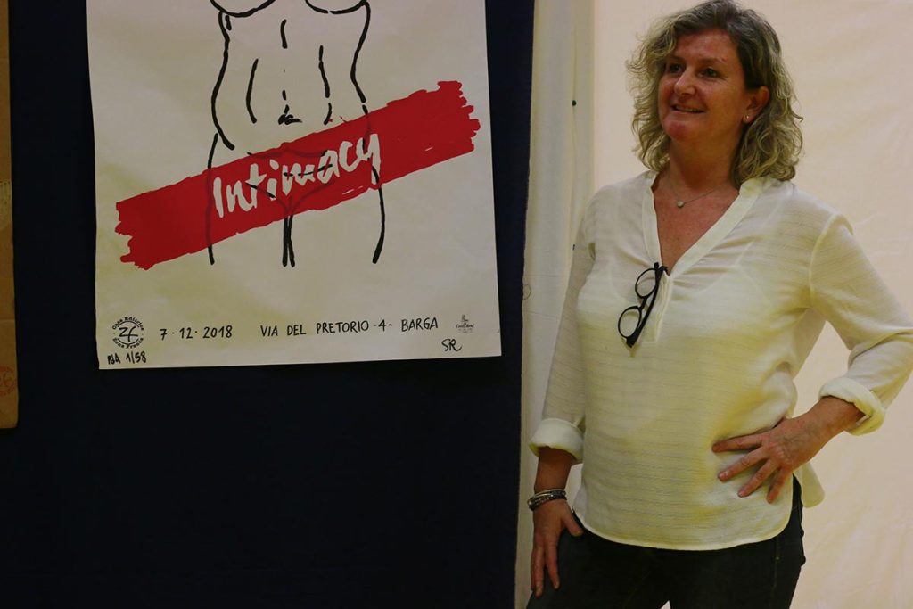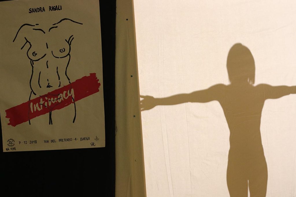 Among the artists presenting their work today there was also Sandra Rigali with new latest new project called Intimacy – a public performance of live painting of female figures, seen from behind a screen as shadows.
