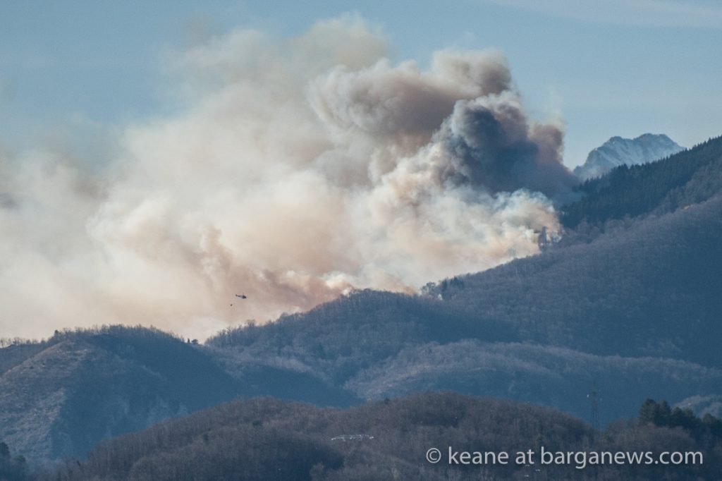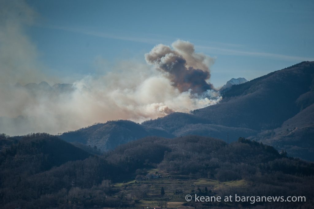 A large forest fire has broken out in the mountains to the west of Barga in Garfagnana with the sky in that part of the area now full of dense plumes of white and grey smoke.