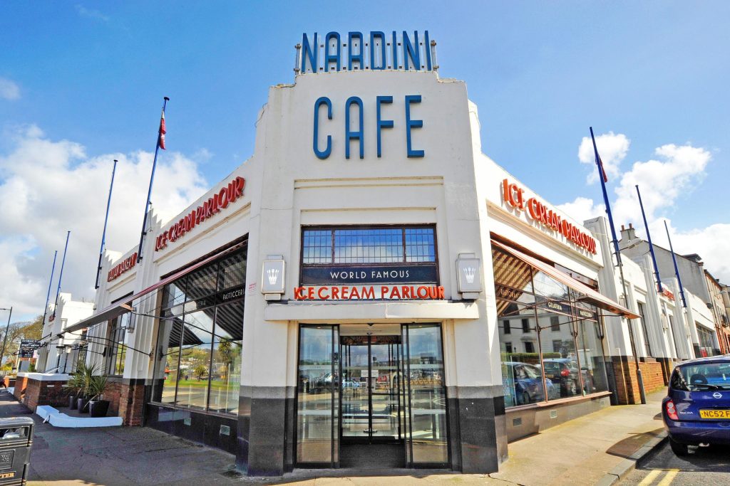 Nardini’s has its roots in the Tuscan town of Barga, where so many emigrants to Scotland come from. In 1895, Pietro Nardini arrived in Scotland with his family. After years of peddling round the country selling from a suitcase, he saved enough to open, in 1935, the Largs café.