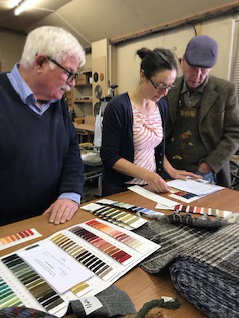 We decided on four colours which I hope will reflect the glorious colours of Barga and Jimmy and Erika will weave a sampler of different designs. Once this is completed we will make a final decision and the tweed will be woven ready for its journey to Barga in September.