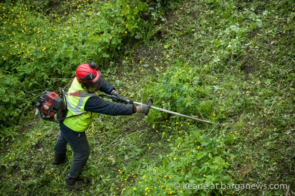 This morning volunteers and workmen from the KME were back in the park ignoring the completely unseasonal biting wind and occasional flurry of rain coming in from the North as they once again cut the grass and cleared the weeds.