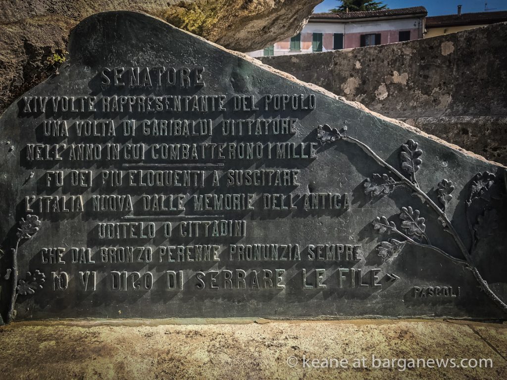 IN THE YEAR IN WHICH THE THOUSAND FOUGHT, THE MOST ELOQUENT IN THE CREATION A NEW ITALY FROM THE MEMORY OF ITS ANCIENT PAST LISTEN TO HIM CITIZENS. HIS IMMORTAL WORDS ENGRAVED IN BRONZE EXHORT YOU STILL: