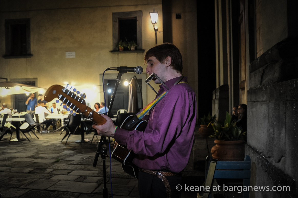 Today he was back in Barga with his trusty 12 string guitar for a brief homecoming visit and a concert outside the Elisa Restaurant in Barga Vecchia.