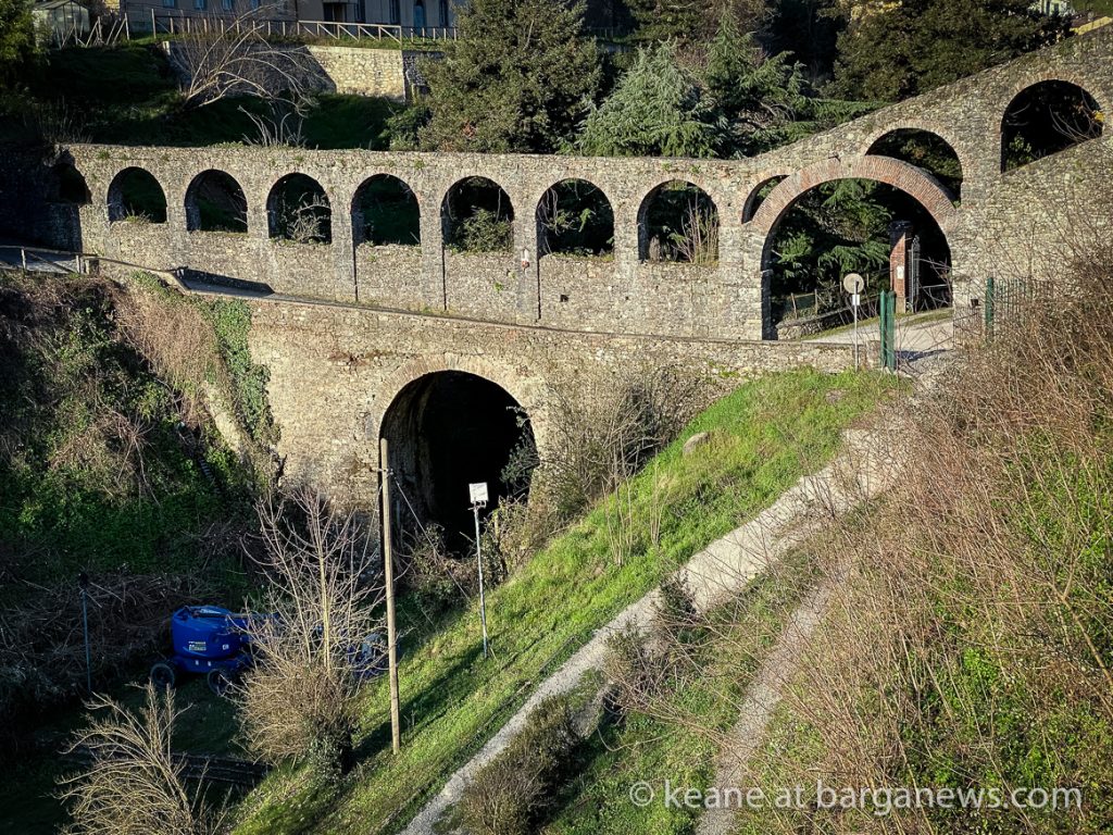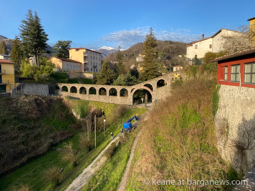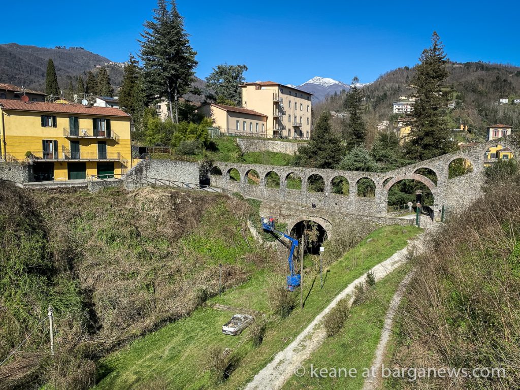 This morning workmen started work on clearing the vegetation covering up the arches of the old aqueduct which was constructed back in 1501 to provide water for Barga Vecchia from the Rupina area outside the city walls.
