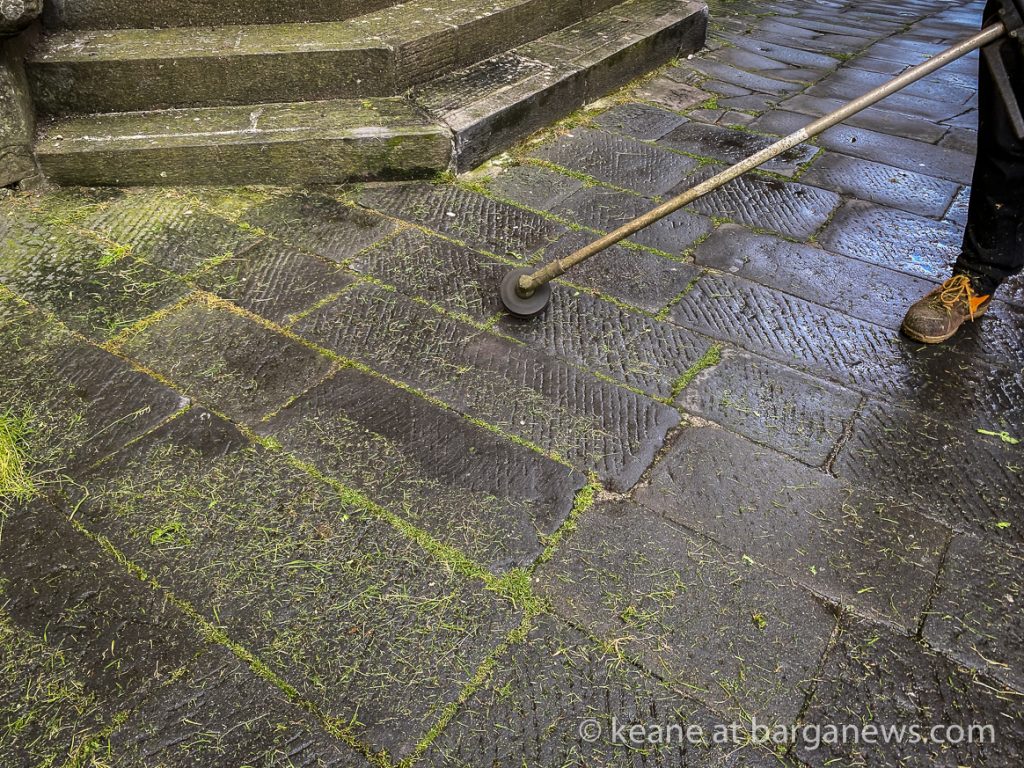 The lack of people walking through the streets of Barga Vecchia has given time and space for the grass to grow up between the stones in the pavements.