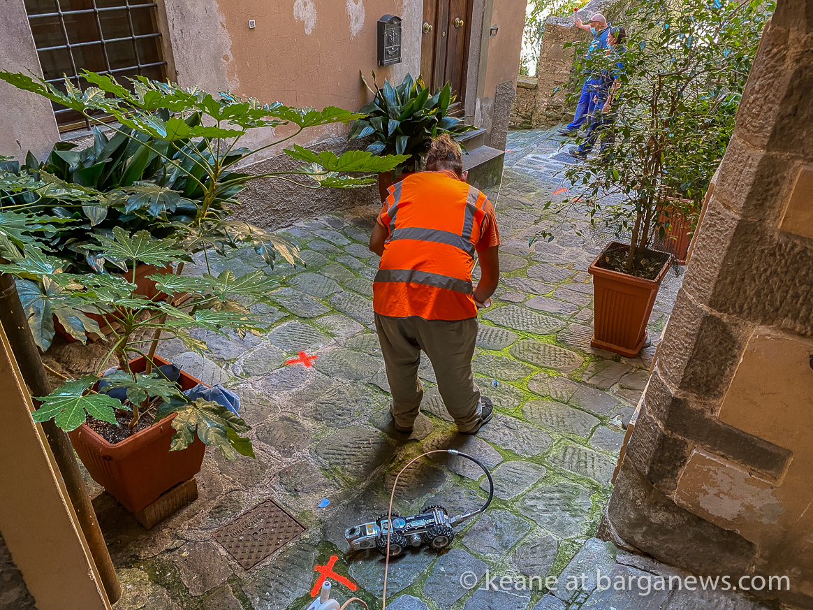 Luckily a video showing the time and the speed of the water coming in was recorded and shown to the men from the Gaia partly responsible for the condition of the water pipes, tubes and channel which run under the ground in Barga Vecchia.
