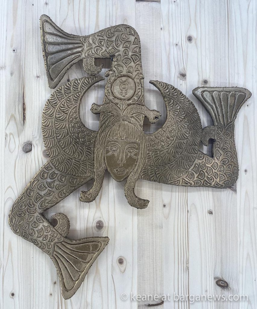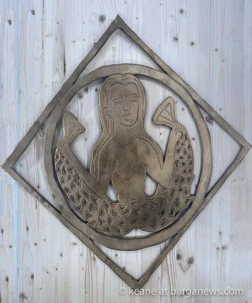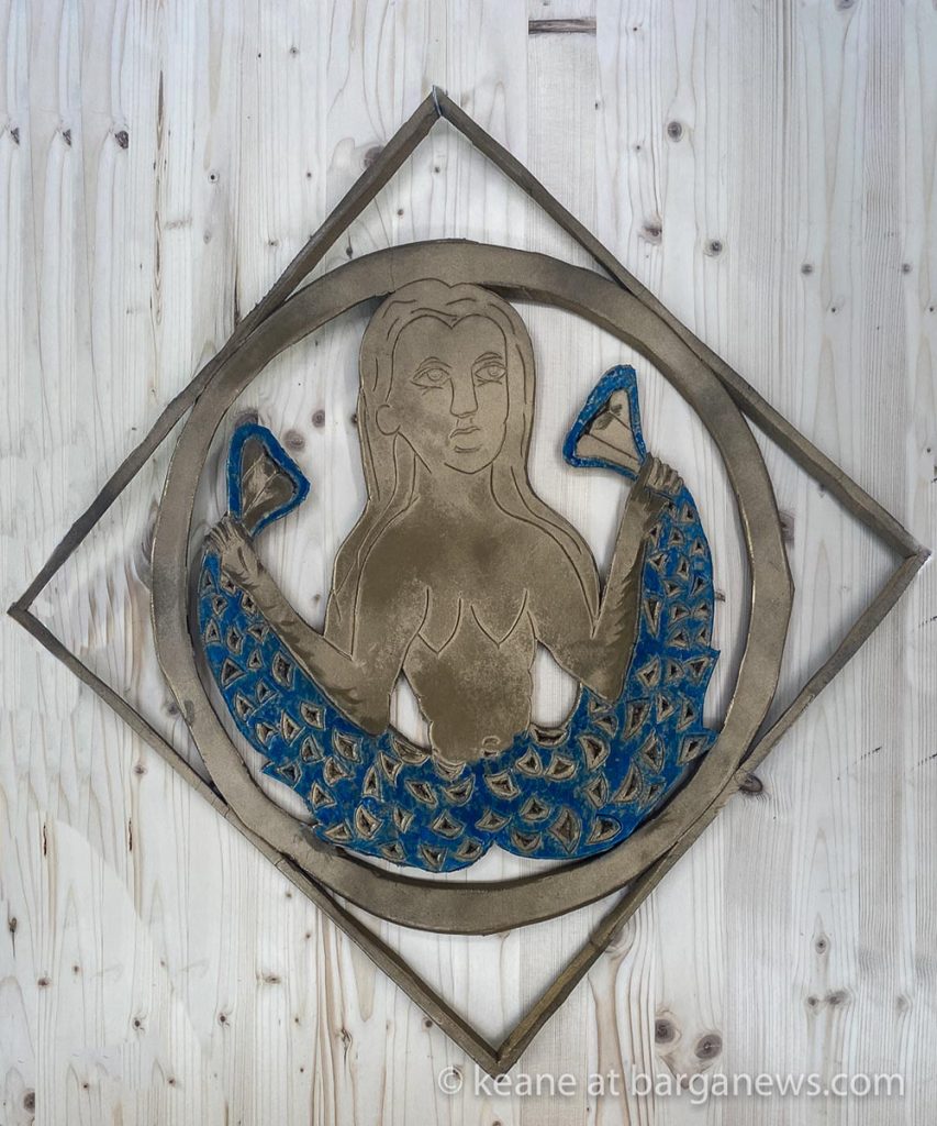The Woman’s Dictionary of Symbols and Sacred Objects points out that a double-tailed siren, a baubo siren is a cross between a mermaid and a sheila-na-gig and according to them, the suggestive pose refers to female sexual mysteries and the lure of temptation for any simple-minded fellow. The sheila-na-gig is rooted in paganism and the worship of evil spirits.