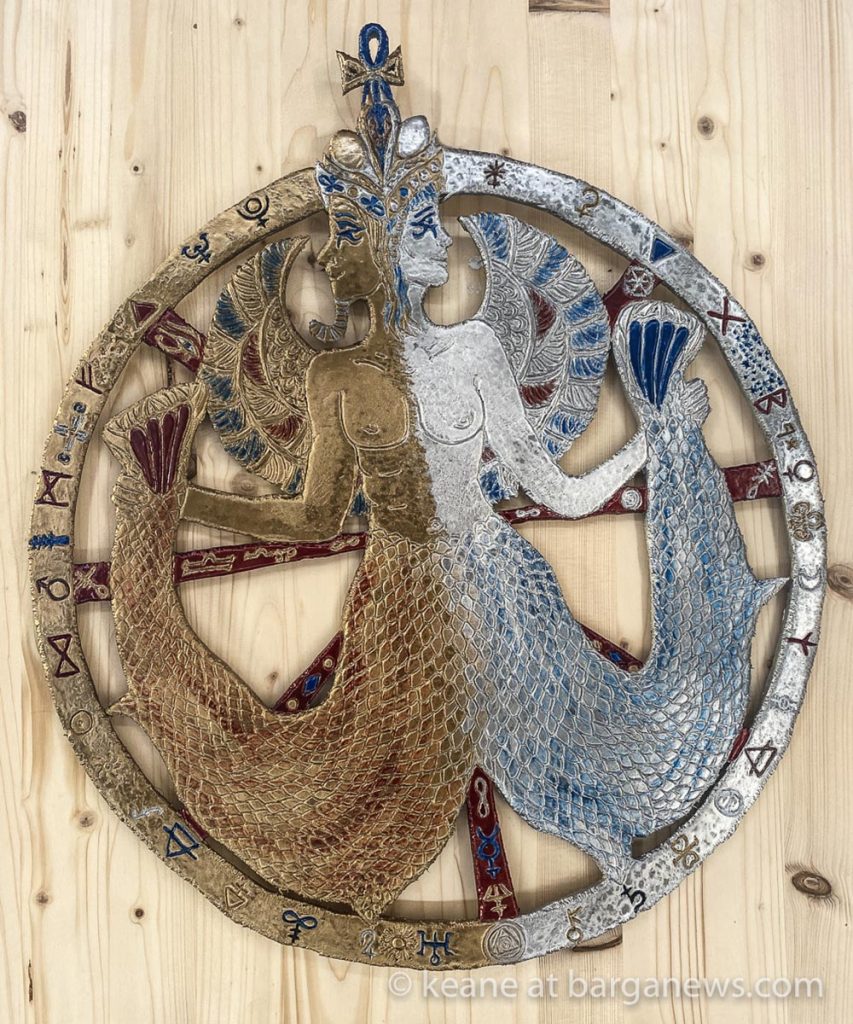 Manuela Bollati has been working on the image of the twin tailed mermaid and elaborating the theme to encompass other themes and concepts.