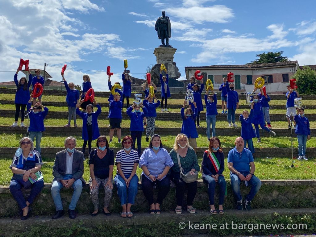 A morning of dance music and poetry in the open ( and all at a safe social distance) ended with a presentation to the Mayor of Barga, Caterina Campani of small booklet entitled “The class V courier” which was the collected thoughts, ideas and feelings of the children shared with their teacher Maurizio Poli during the months of the coronavirus emergency.