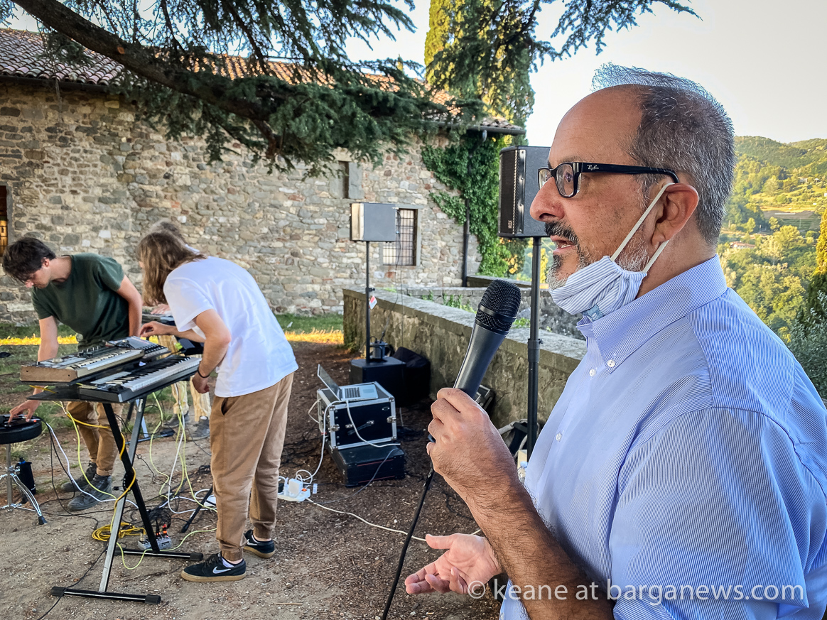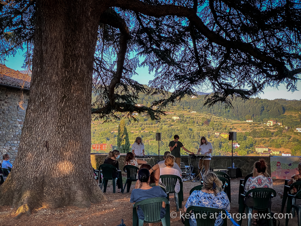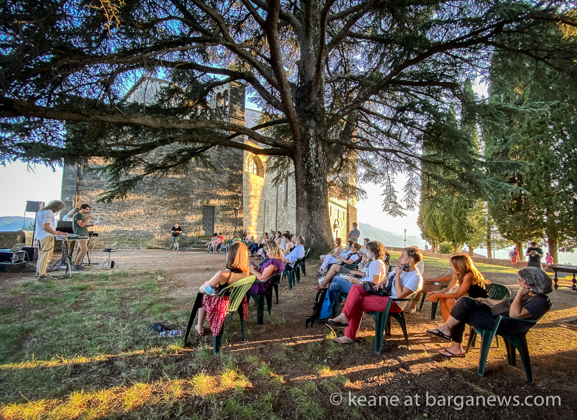 Alessio Vanni and his publisher, Andrea Giannasi, were in Barga vecchia this afternoon to present the book beneath the shade of the 104 years old tree between the Duomo and the Museum.