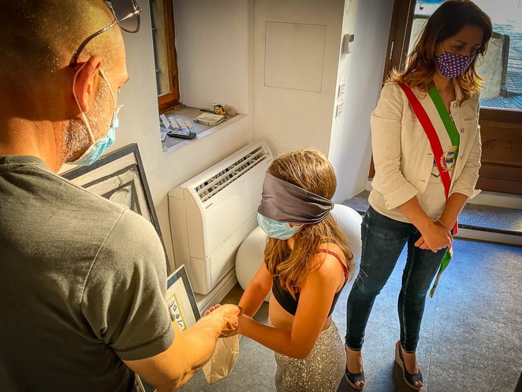 Present at the delivery of the gift were the Dean of the Piaggia Institute, Dr. Rossana Pacini, the contact person, professor of the Institute as well as Photographer and Artist, Florian D’Angelo, and Walter Tognocchi representing Oxocurators – OXO Collection – The Gallery – Barga.