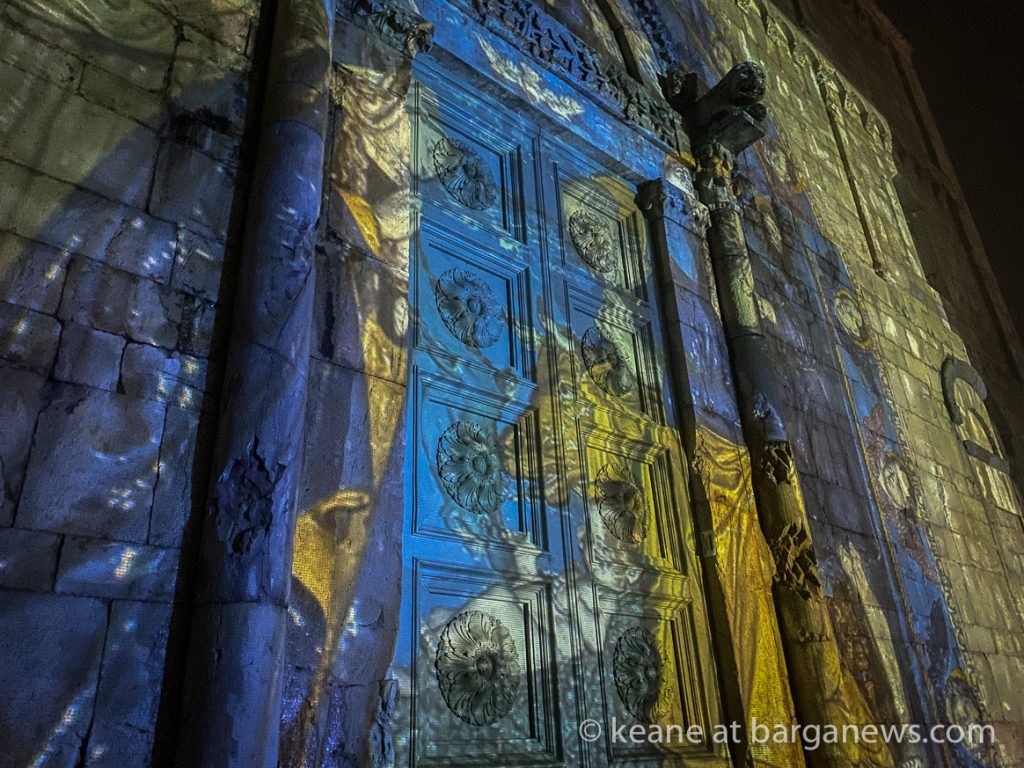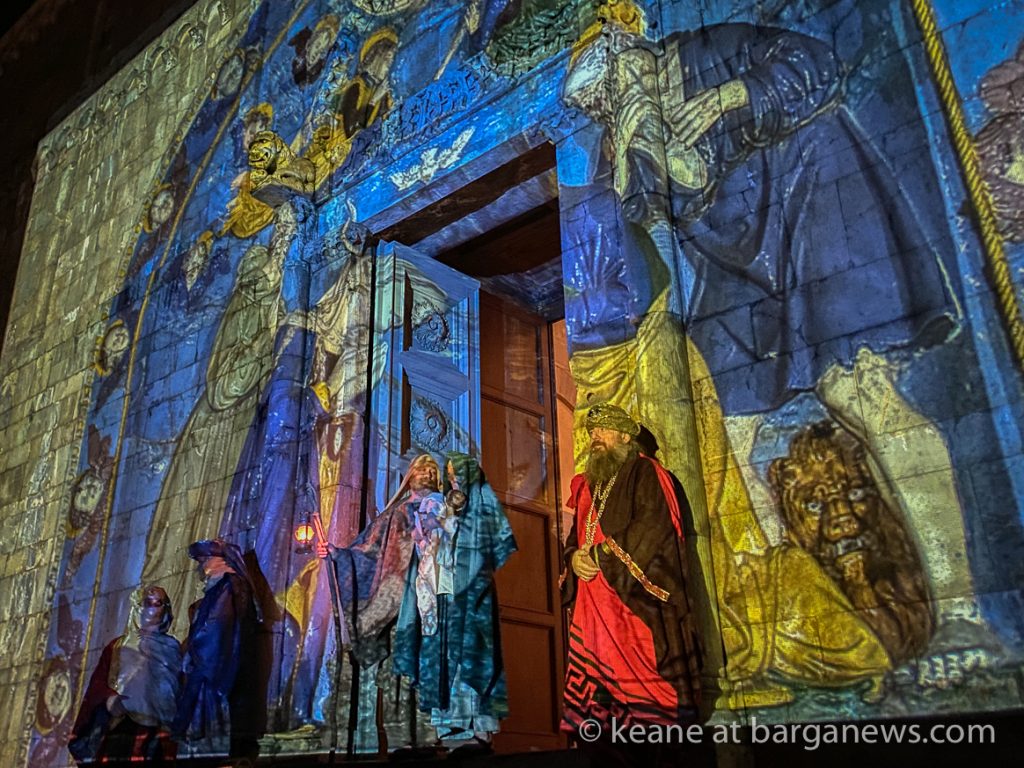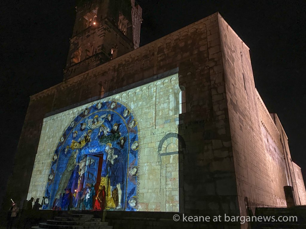 Another change in the traditional event with the patronage of Contemplazioni was the huge projection on the facade of the Duomo of an image of the glazed terracotta “Nativity” by Luca Della Robbia – the joy of the musician angels and cherubs surrounding the baby Jesus in the crib will now stretch beyond the walls of the convent of San Francesco to excite all those who will come to admire it in Barga.