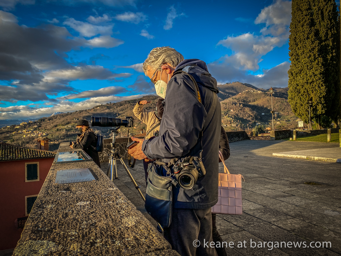 The observers and photographers lined up outside the Duomo, low cloud over the mountain obscured Monte Forato BUT at the very last moment they lifted but not in time for the sun to be seen through the the natural arch of the Monte Forato.
