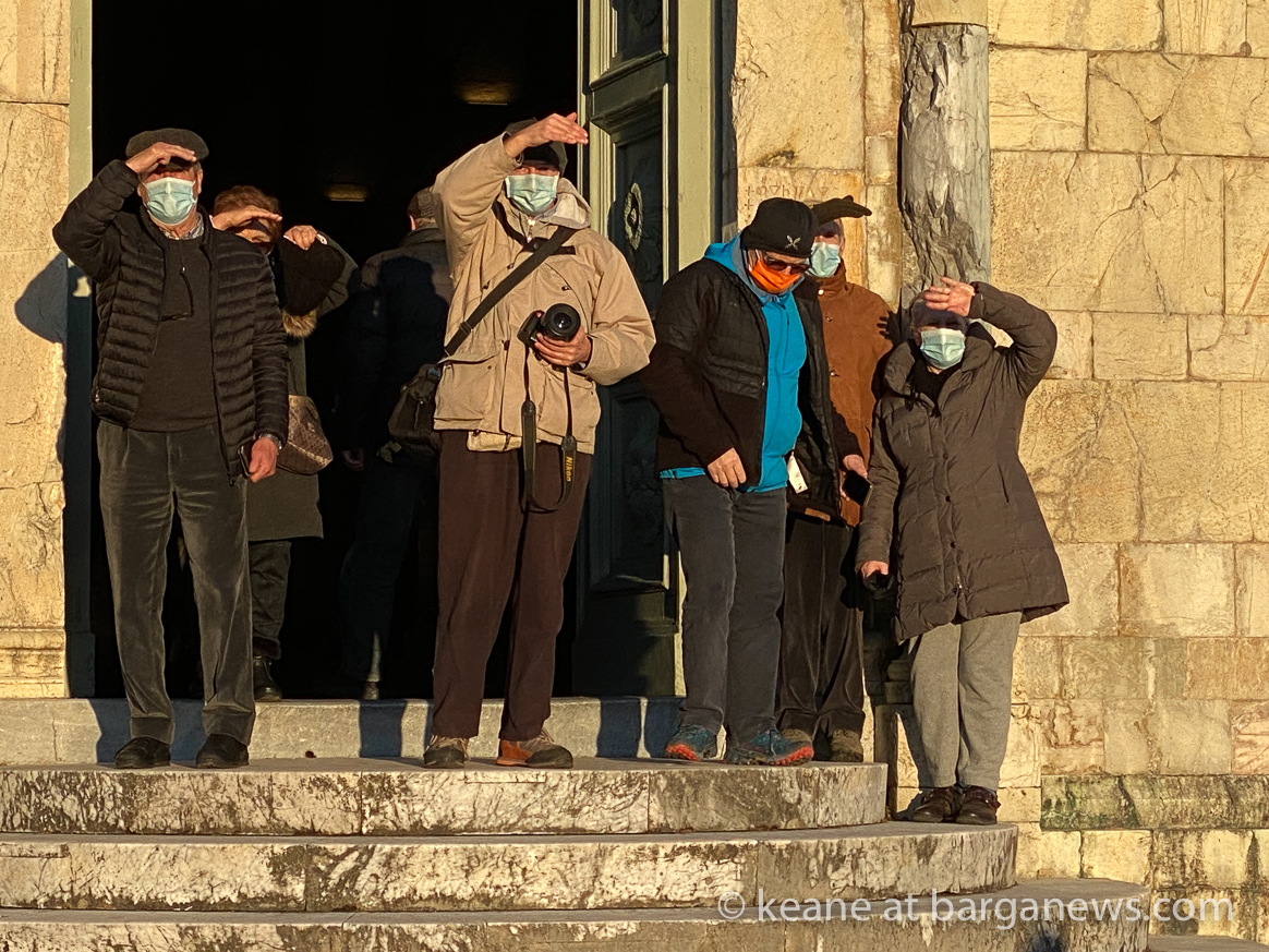For the last couple of days there have been people waiting to catch a glimpse of the doppio tramonto as the sun edged closer and closer to the hole.