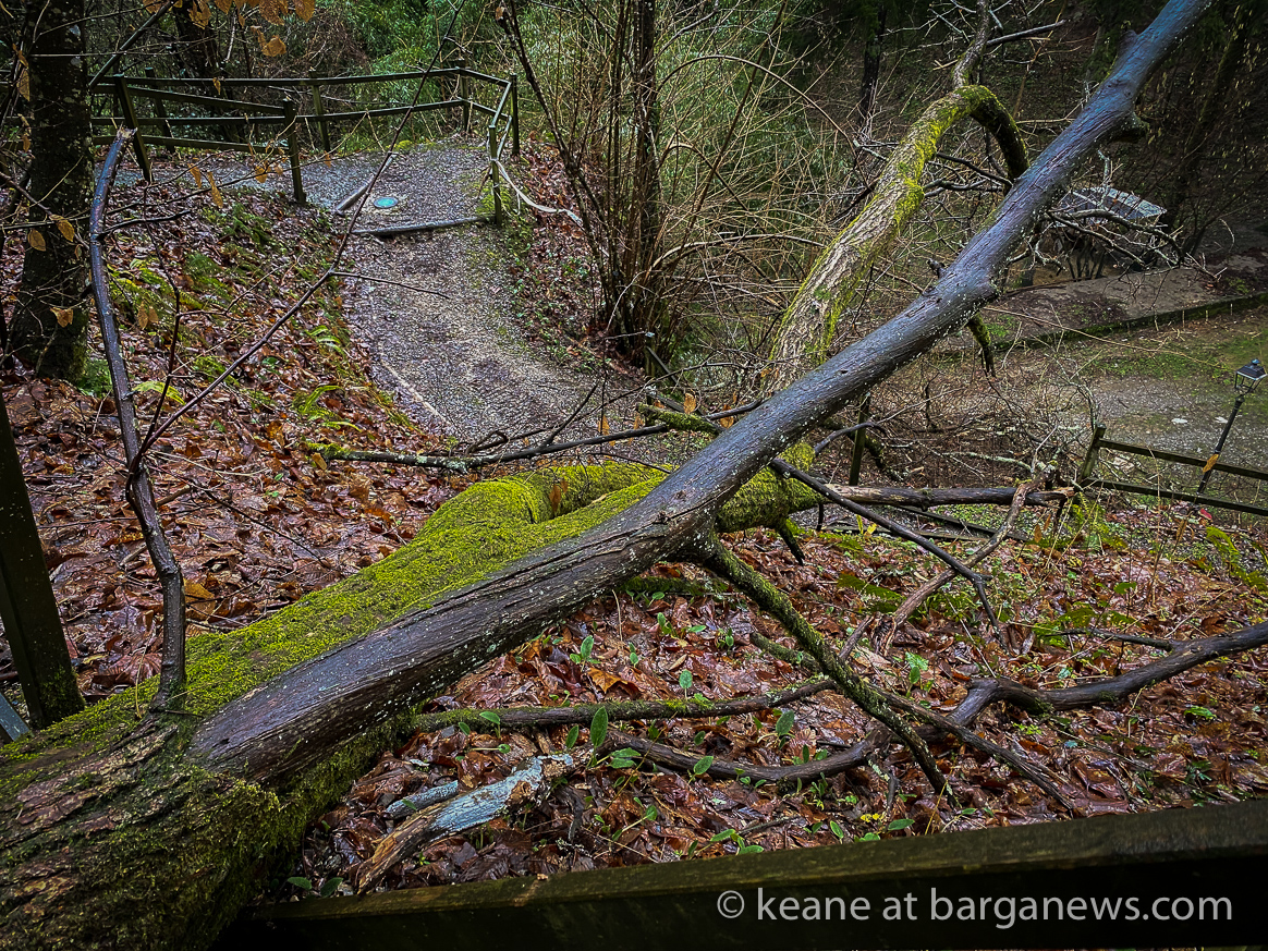 Torrential rain during the night has loosened the ground around a tree in Parco Buozzi and it has crashed to the ground taking with it some of the electrical system that connected the lights in the foot paths around the park.