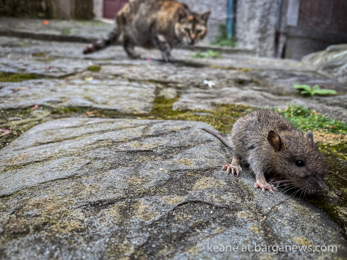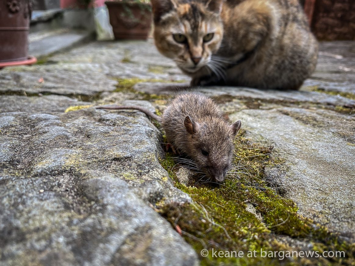 Adult cat and tiny rat meeting in Barga Vecchia It was a story that was never going to have a happy ending (at least for one of the participants) but it is not often that this story takes place in broad daylight and with a photographer present. PREV NEXT