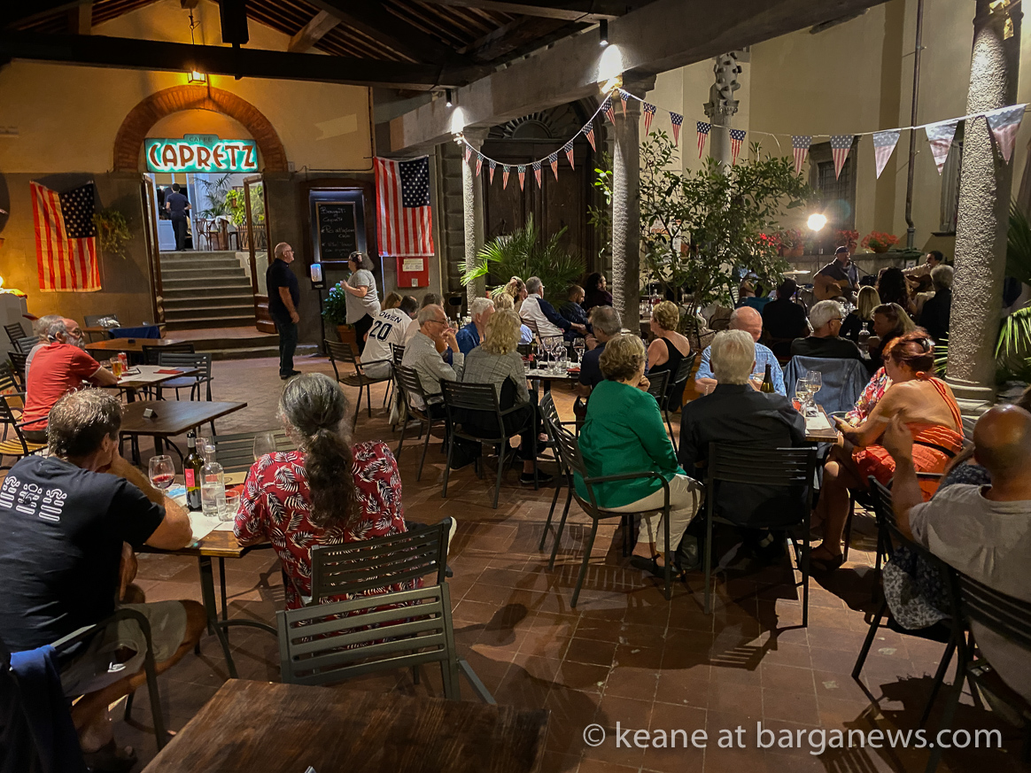 The 4th of July and it seems like normal life may just be returning to the city as a couple celebrated their wedding anniversary at the Cafe Capretz in Barga Vecchia , organised a surprise concert from the Rick Hutton Acoustic Band.