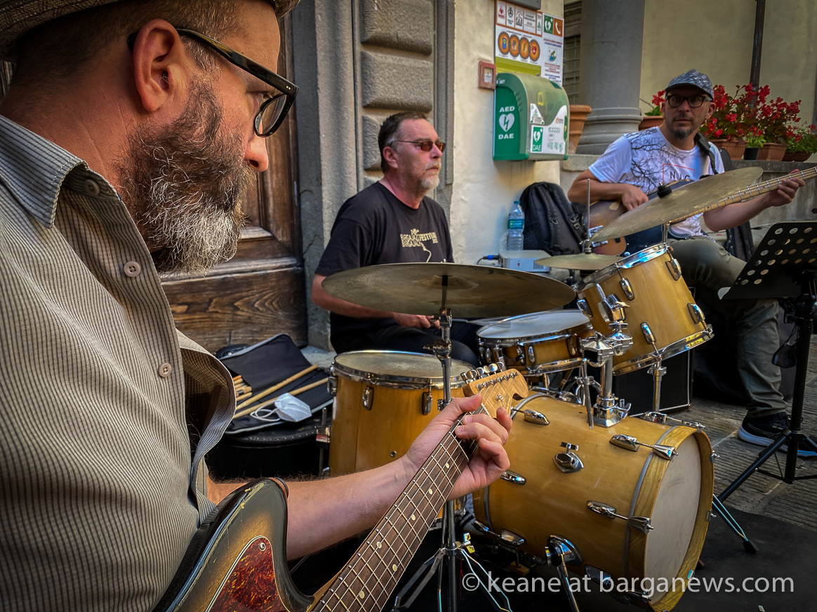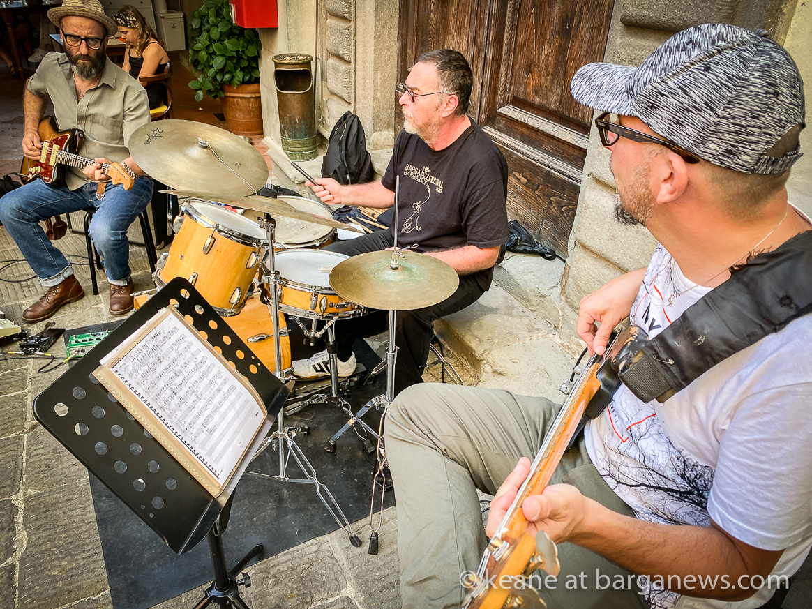 Luca Giovacchini Trio play Barga Vecchia One of the most accomplished and creative guitar players in the area was strutting his stuff this evening along with his trio as they played Piazza Salvo Salvi PREV NEXT