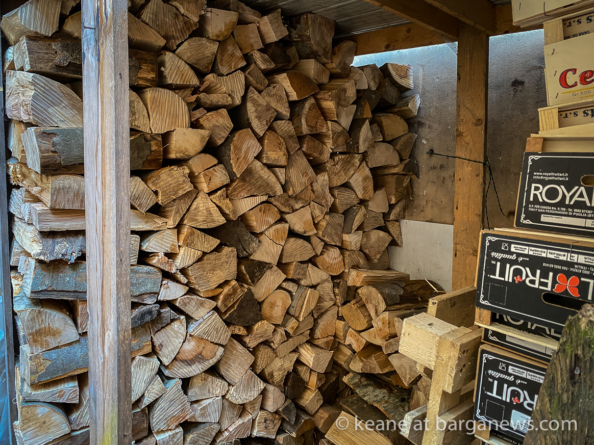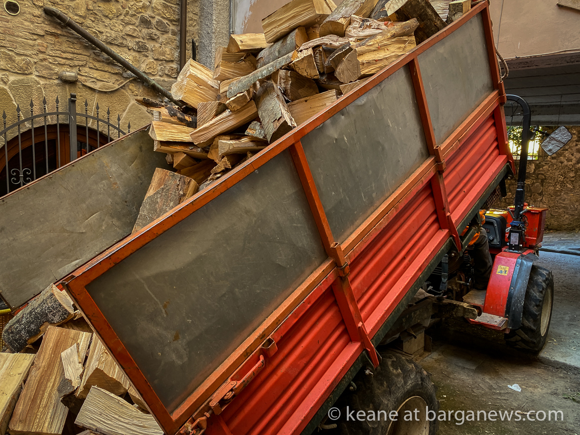 The main problem is getting the wood to the house as the steep, narrow streets and alleyways in Barga Vecchia make transporting the logs a time consuming business. Stacking the wood and keeping it dry can also be a problem for those without large cantinas or courtyards.