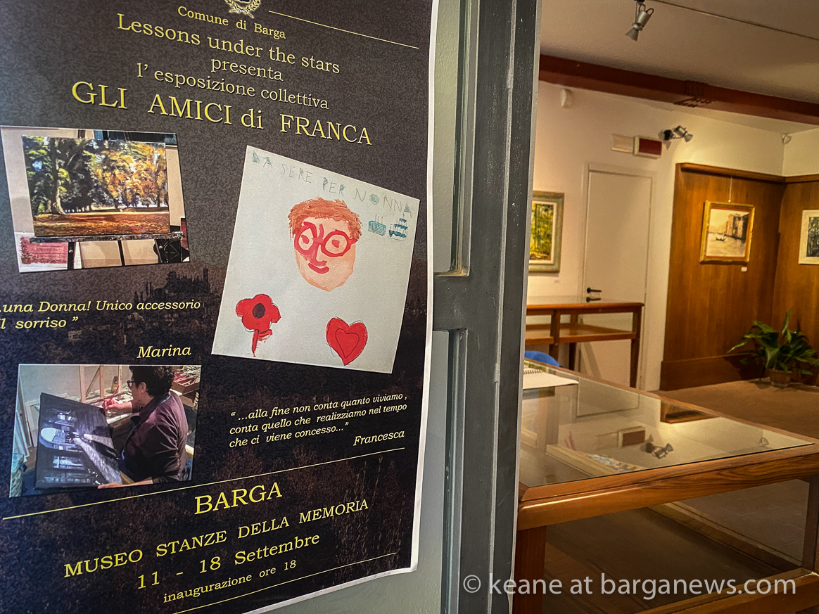 An exhibition entitled “Franca’s friends” organised by “Lesson under the stars” opened in the Stanze della Memoria Museum in Barga Vecchia this afternoon.