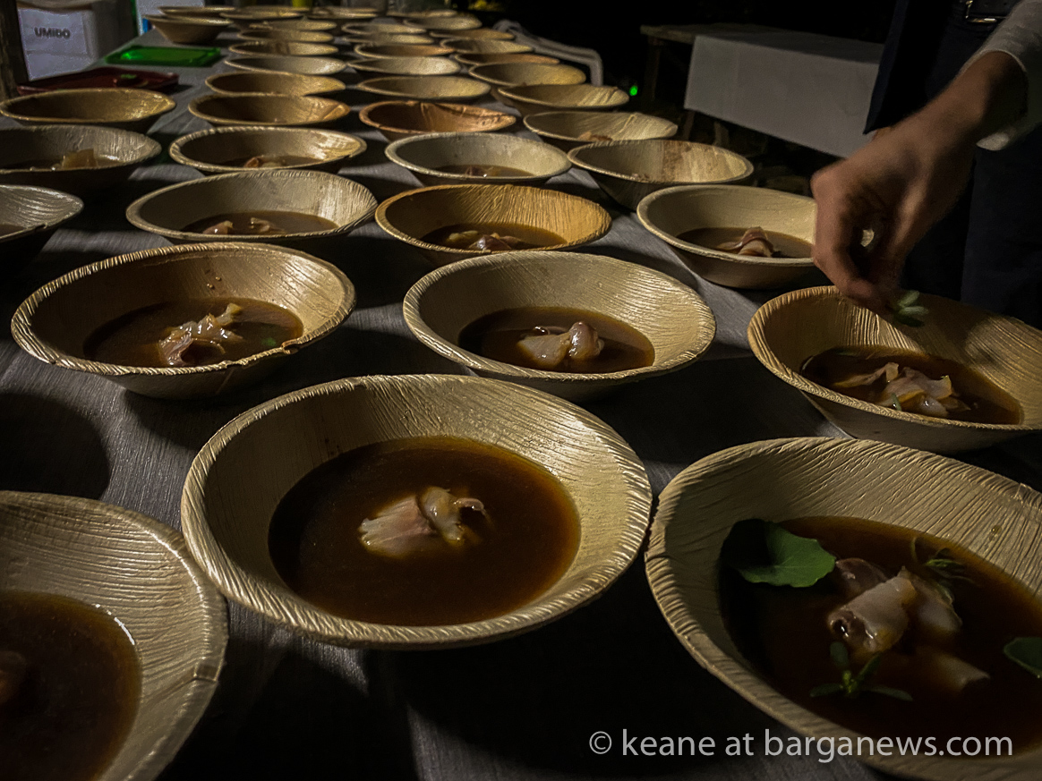 – Trota affumicata, brodetto apuano, chips di castagne, portulaca ed olio all’abete.