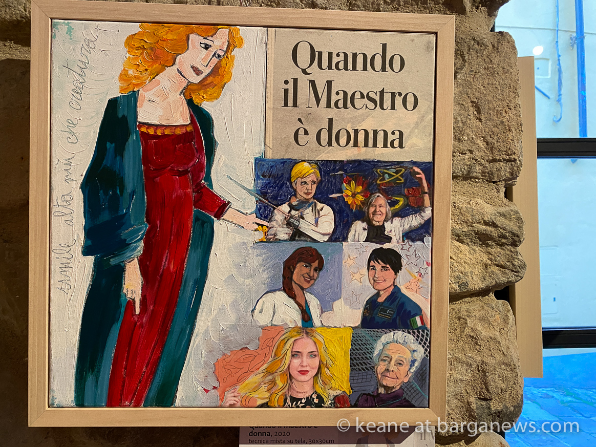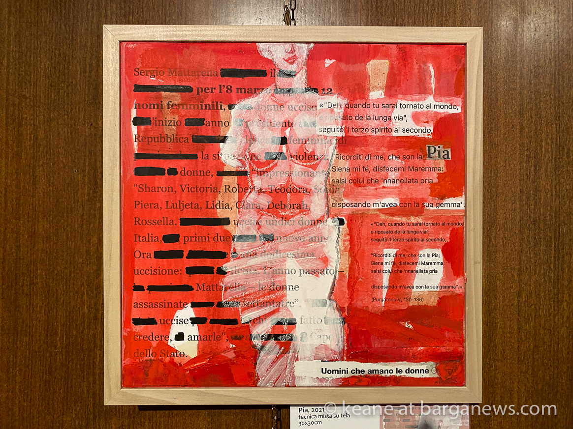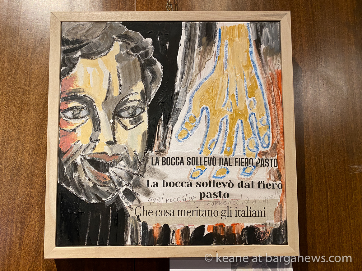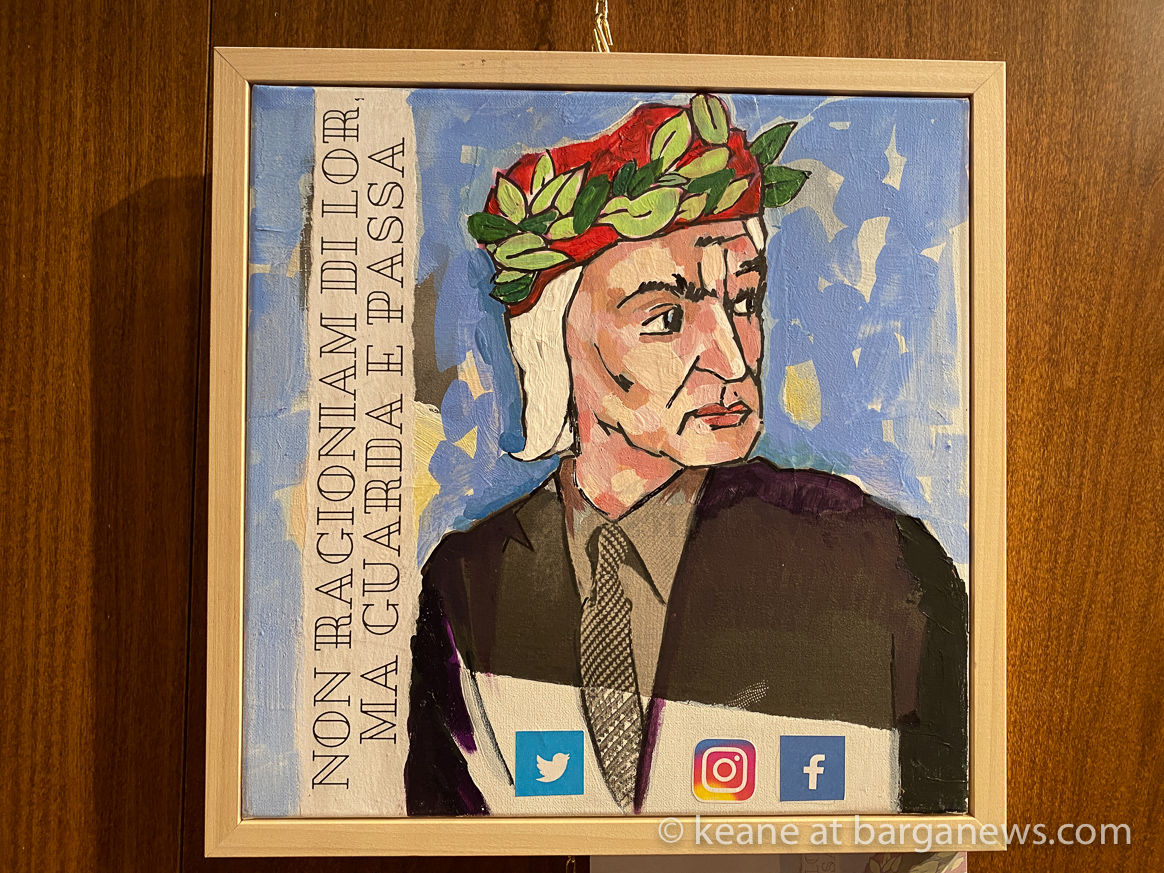 Avere le opere di Sandra Rigali dedicate a Dante nella nostra cittadina è motivo di orgoglio e in particolare di rendere vivo quel rapporto che per secoli ci ha legato a Firenze. Il territorio di Barga è stato infatti un’enclave fiorentina dal lontano 1341 fino alla vigilia dell’Unità d’Italia e quindi con la storia di Firenze e dunque anche con Dante, qui c’è un rapporto particolare. C’è poi il collegamento tra Pascoli e Dante che viene messo in luce dalle opere di Sandra Rigali. – The Mayor of Barga Caterina Campani