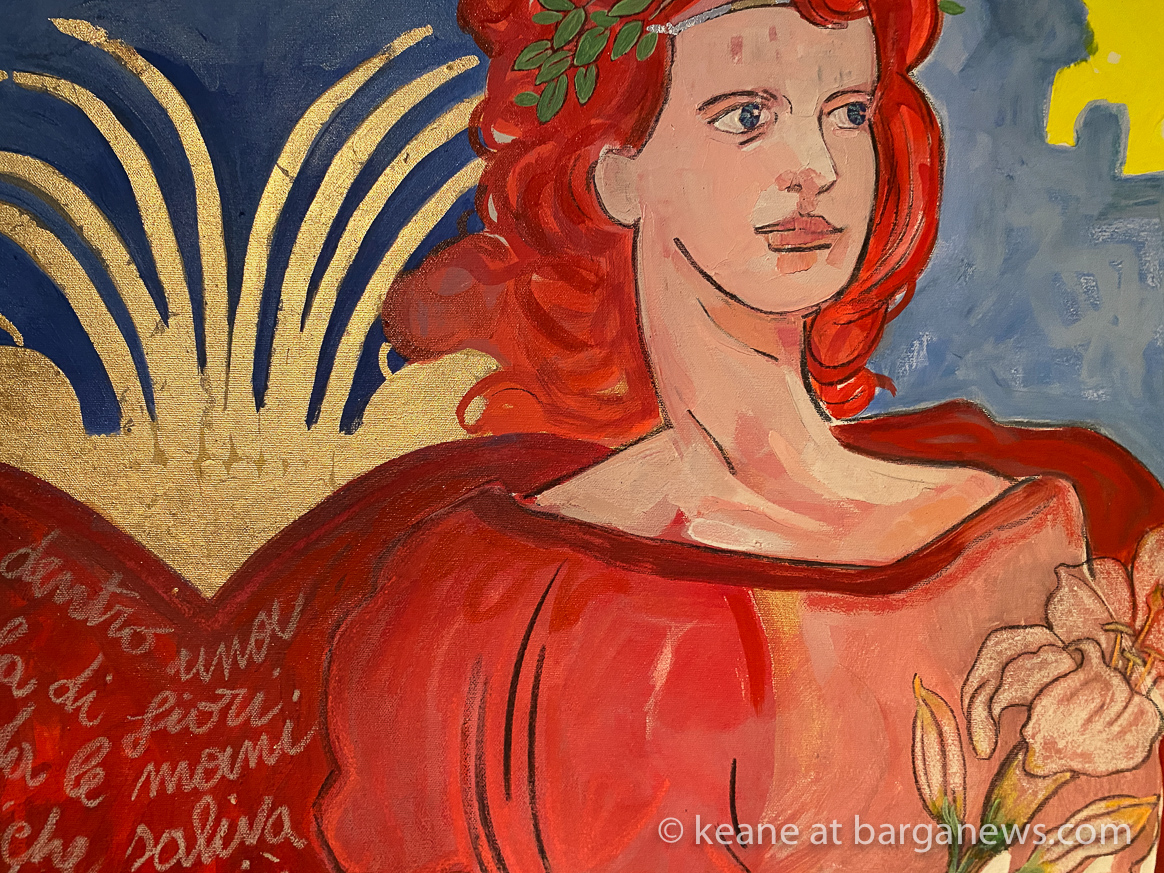 Large-format canvases and small panels accompany the visitor, like postcards of a trip to Italy, through real and imaginary places, in which some significant moments of Dante’s work take place, linked to his most avant-garde ideas, such as the role of women and language as a mirror of society. The connections, centuries later, between Dante, d’Annunzio and Pascoli are also highlighted.