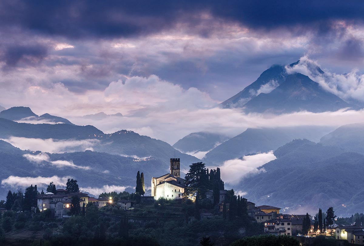 If the conditions are right* and you are in the right place at the right time, it is possible twice a year, on the 30th – 31st January and the 11th – 12th November to see the doppio tramonto – the double sunset viewed from outside the Duomo in Barga Vecchia.
