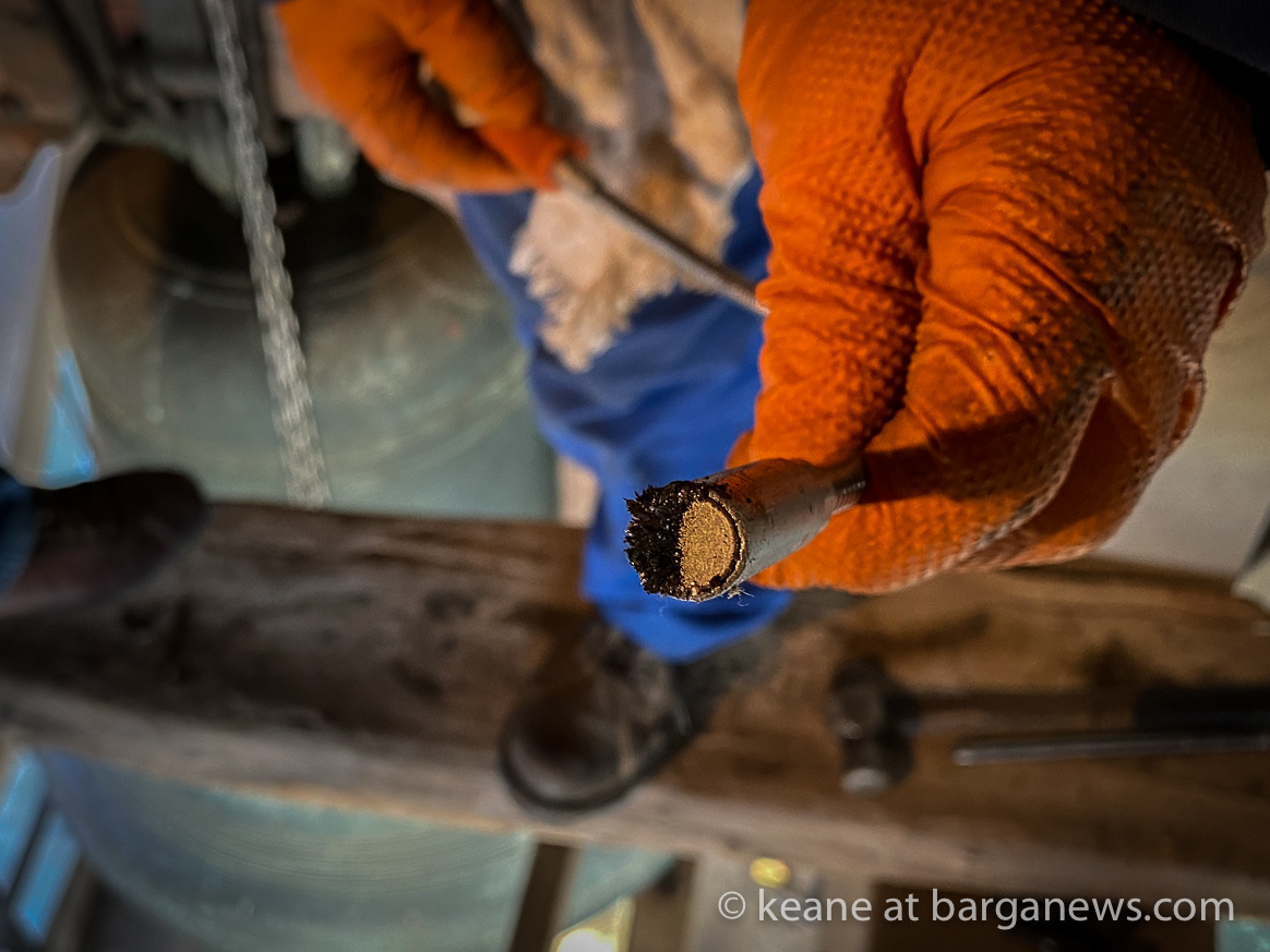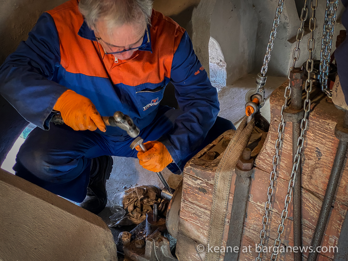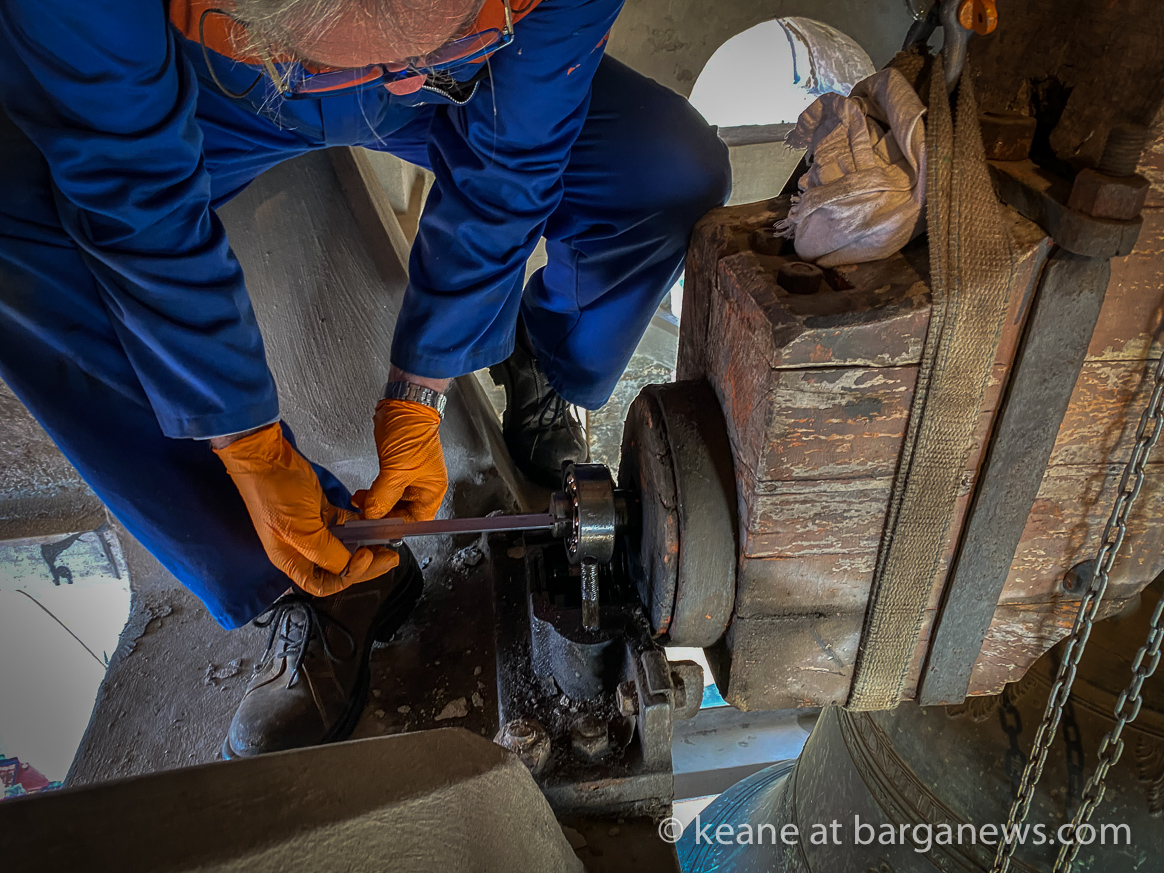 It was time to check on the bearings which carry the weight of the centuries old bell and which were last changed over a decade ago.