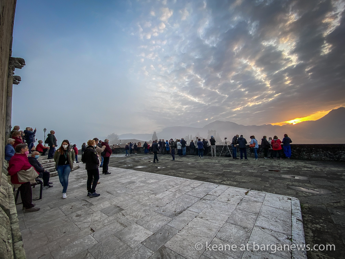 The observers and photographers lined up outside the Duomo, low cloud over the mountain obscured Monte Forato BUT at the very last moment they lifted just in time for the sun to be seen through the natural arch of the Monte Forato.