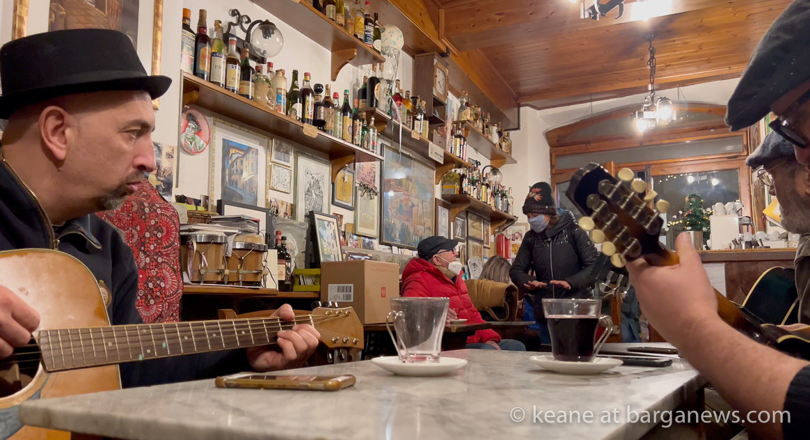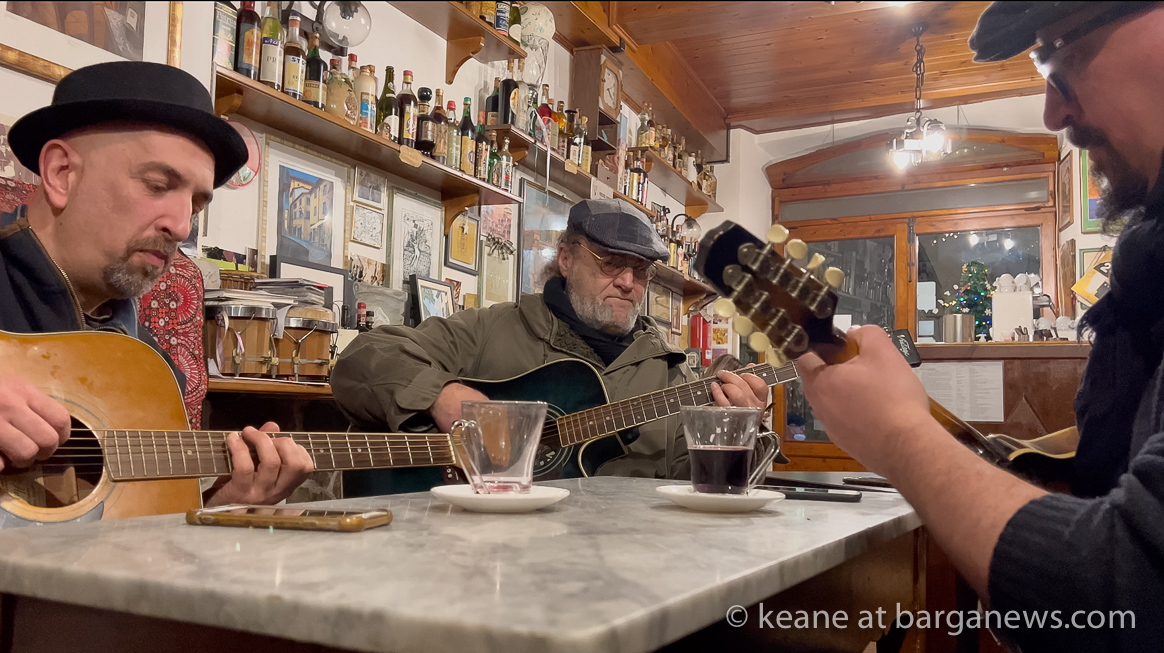 Two degrees outside with a stiff wind making it feel a good deal cooler than that but inside Da Aristos in Barga Vecchia mulled wine and some honest to goodness live acoustic music warmed the cockles of yer heart.