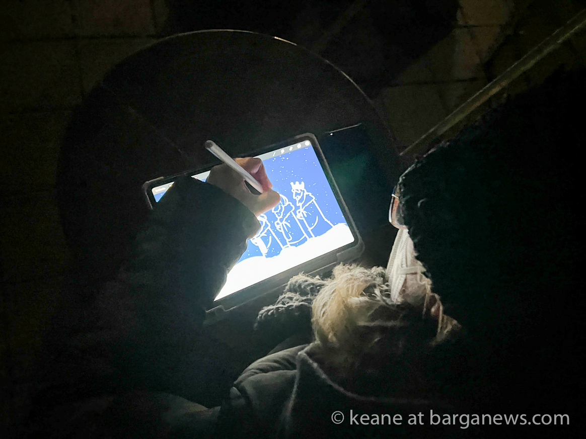 With the aid of an ipad, a projector, an apple pencil and the Procreate software, the digital drawings were seen from across the valley as a drone overhead recorded Martina Moscardini working in the dark and extreme cold creating her drawings.