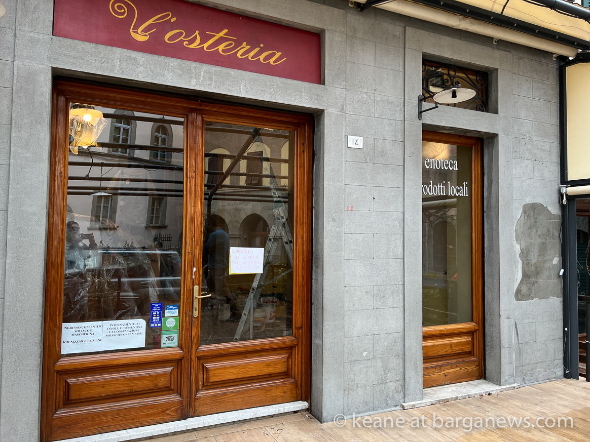 In Barga Vecchia some other changes appear to be on the way with the portrait painter André Romijn opening the doors of his new art gallery – The ‘Portrait Painting Gallery (article here) and decorators hard at work in the Osteria with an apparent change of management.