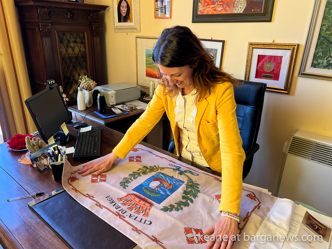 This week he was back in the Barga and presented a finished flag to the Mayor of Barga, Caterina Campari.