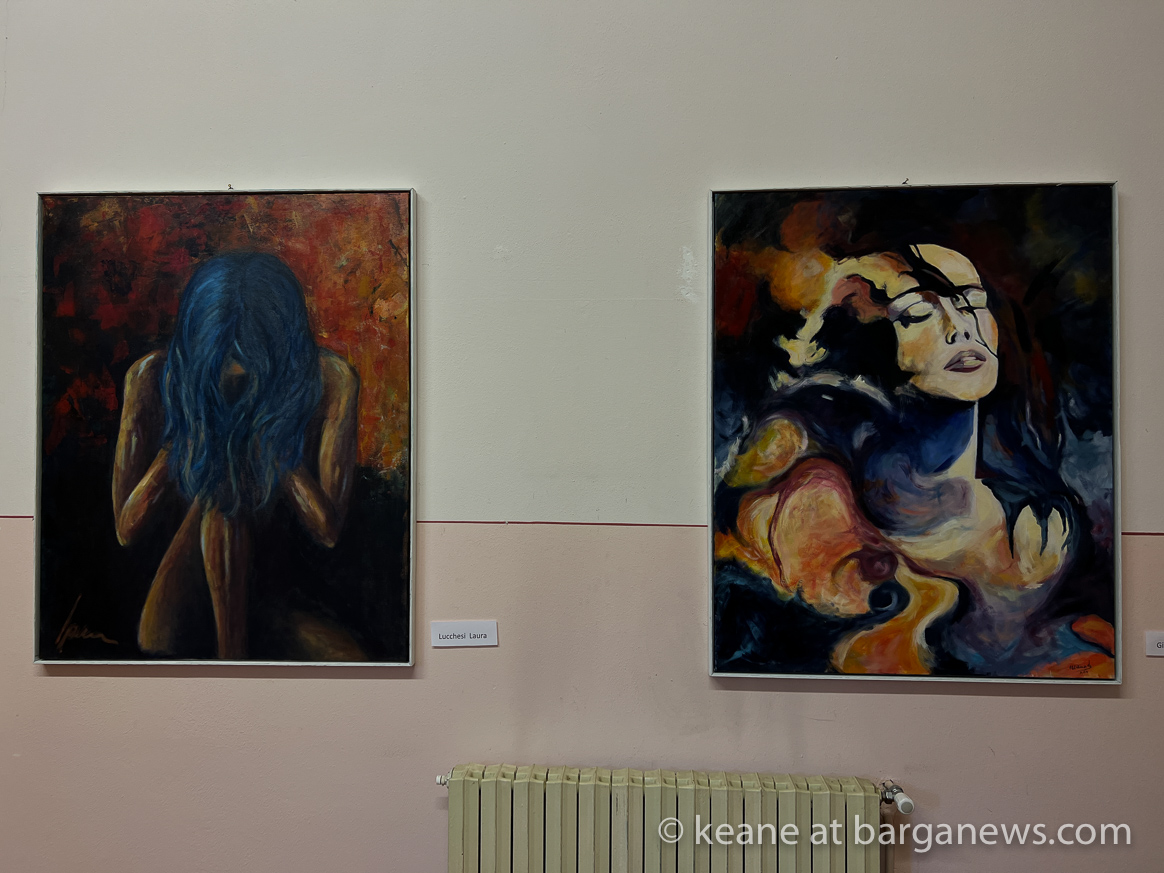 Nella sala espositiva di Palazzo Balduini nel centro storico di Barga.