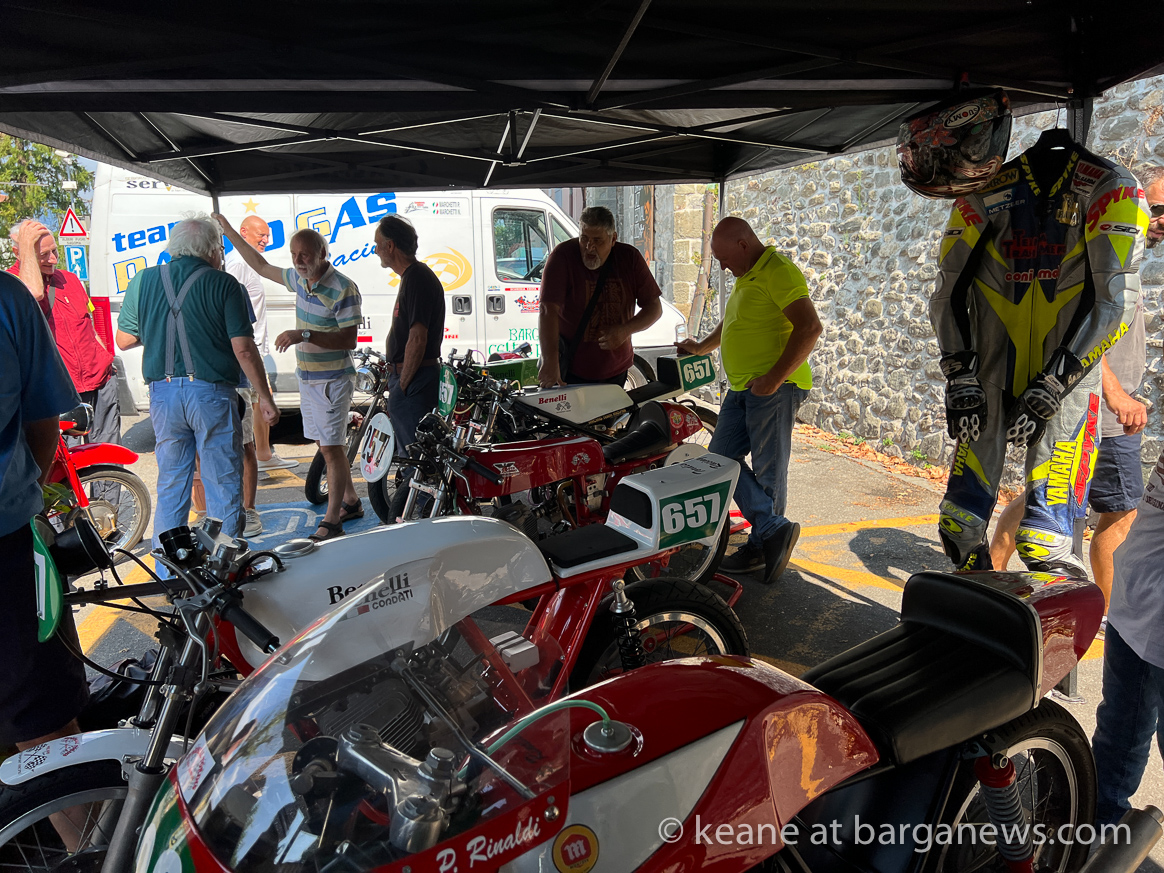In memory of Tordo – an exhibition of Vintage and veteran racing motorbikes was held outside the main walls of Barga Vecchia this morning.